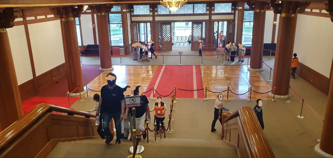 그리고 중앙 로비와 충무실 사이엔 인왕실이라는 공간이 있는데 소규모 연회나 외국 정상들과의 공동 기자회견이 진행되었던 장소라고 합니다. 이 곳을 지나면 다시 중앙로비가 나오는 구조입니다.