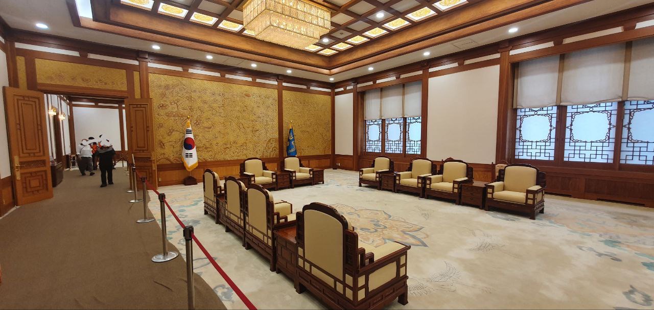 2층으로 올라오면 제일 먼저 대통령 집무실과 접견실이 보입니다. 집무실은 말 그대로 대통령이 청와대 본관에서 주로 업무를보던 장소입니다. 접견실은 외국 내빈, 혹은 외국 정상들과 정상회담을 하던 장소로 많이 보이던 장소입니다. 지난 수십년 동안대한민국을 움직인 핵심 장소를 와보니 신기했습니다.