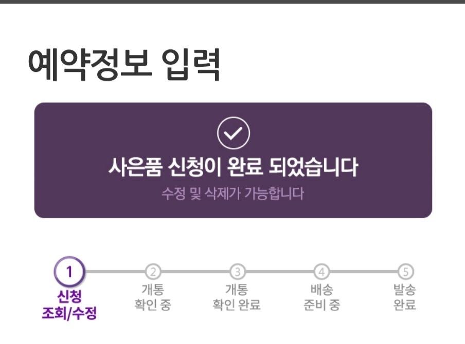 ‘사전구매자 사은품’신청이 완료됩니다.