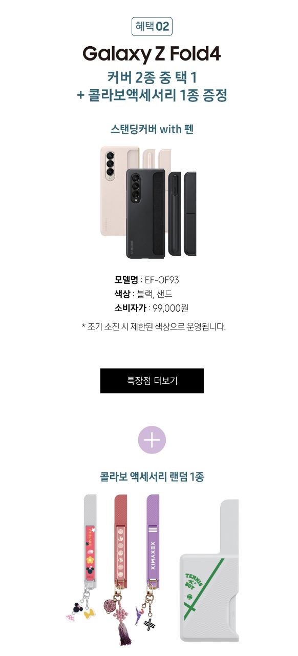 두 번째 혜택으로는 폴드 구매자에겐 소비자가 99000원의 ‘스탠딩 커버 with 펜 케이스’와 콜라보 액세서리 1종을
