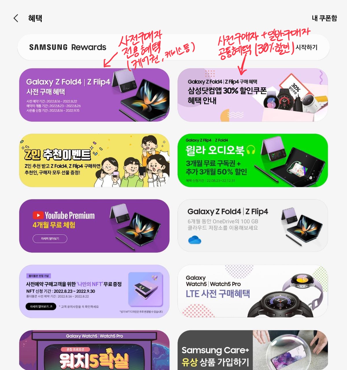 [갤럭시Z4 시리즈 구매자 혜택(사전구매+일반구매, 9월 30일까지 개통자 대상)과 신청방법]