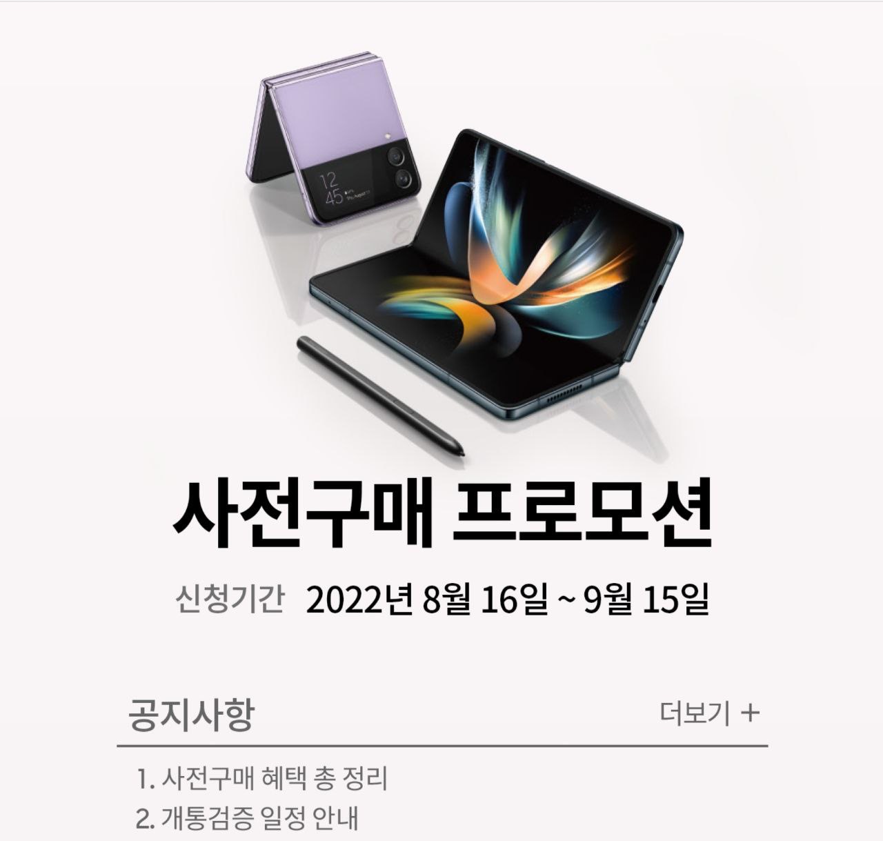2022년 올 해 갤럭시 Z 시리즈(폴드4, 플립4)를 사전구매기간에 구매하신 분들을 위한 사은품 목록과 신청방법입니다.