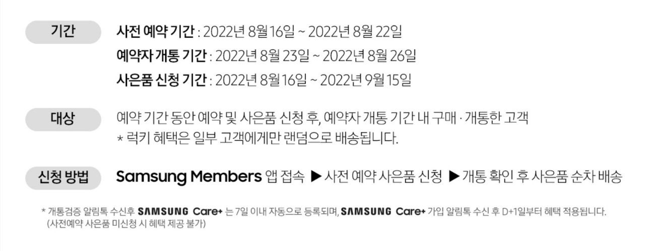 올 해 갤럭시Z 시리즈 사전구매, 사전판매자를 대상자를 위한 혜택 및 사은품으로