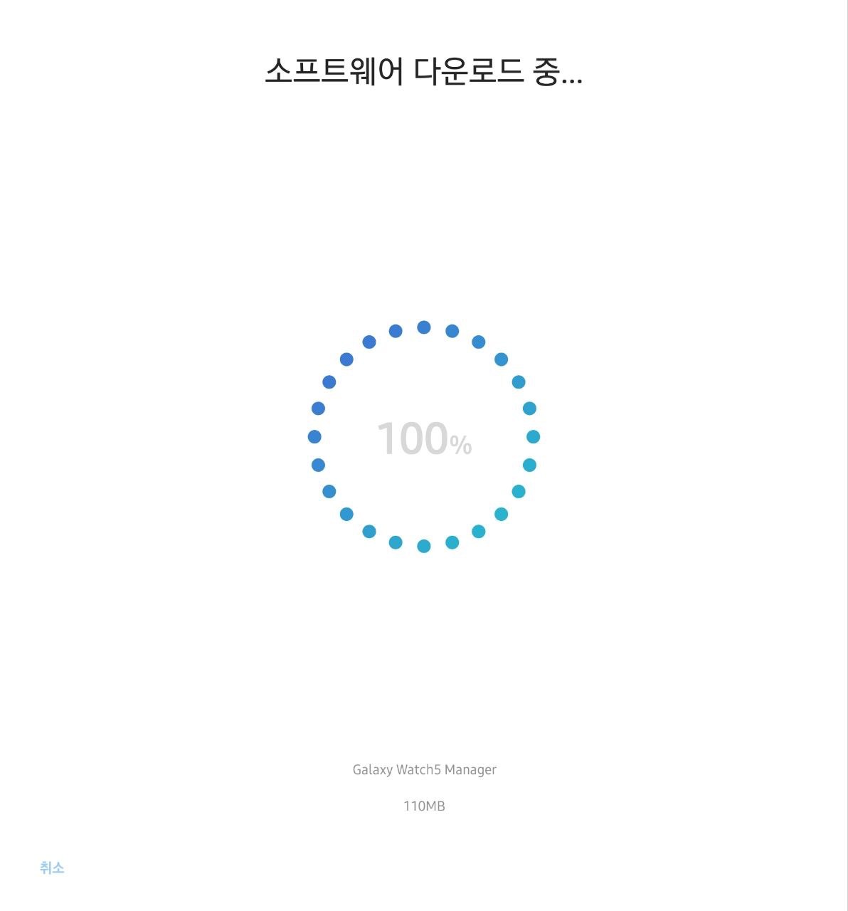 갤럭시워치5로 소프트웨어 다운로드하는데 대략 10~15분 정도의 시간이 소요되었습니다.