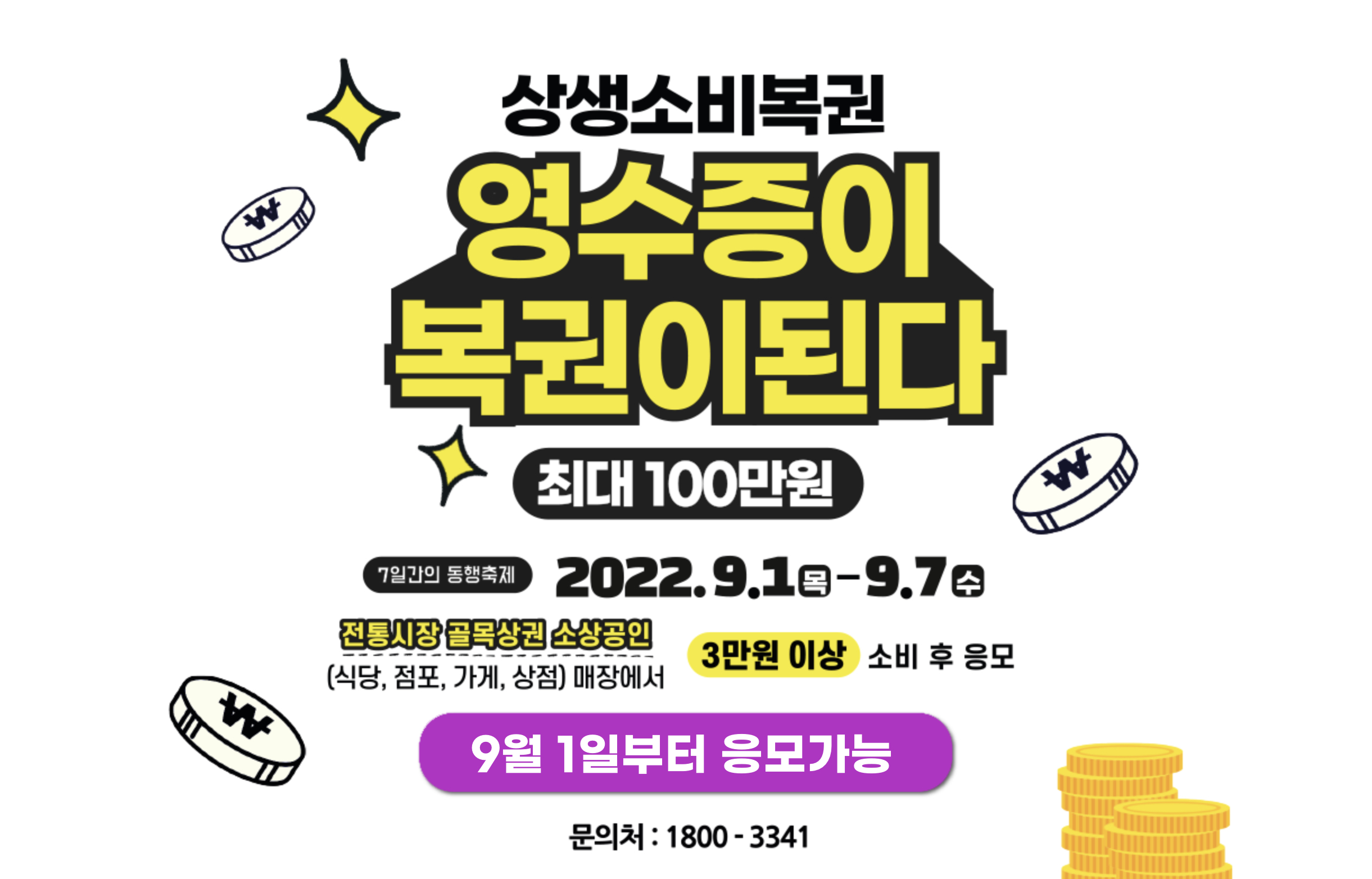 2022년 9월 1일~7일, 상생소비복권 시행! 영수증이 복권이 된다면?정보 2022. 9. 1. 00:03반응형