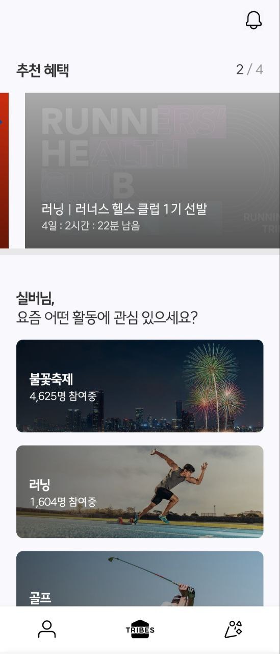 트라이브 앱을 설치한 후 실행을 하면 바로 메뉴 상단에 불꽃축제 항목이 있는데요, 이걸 터치하시면