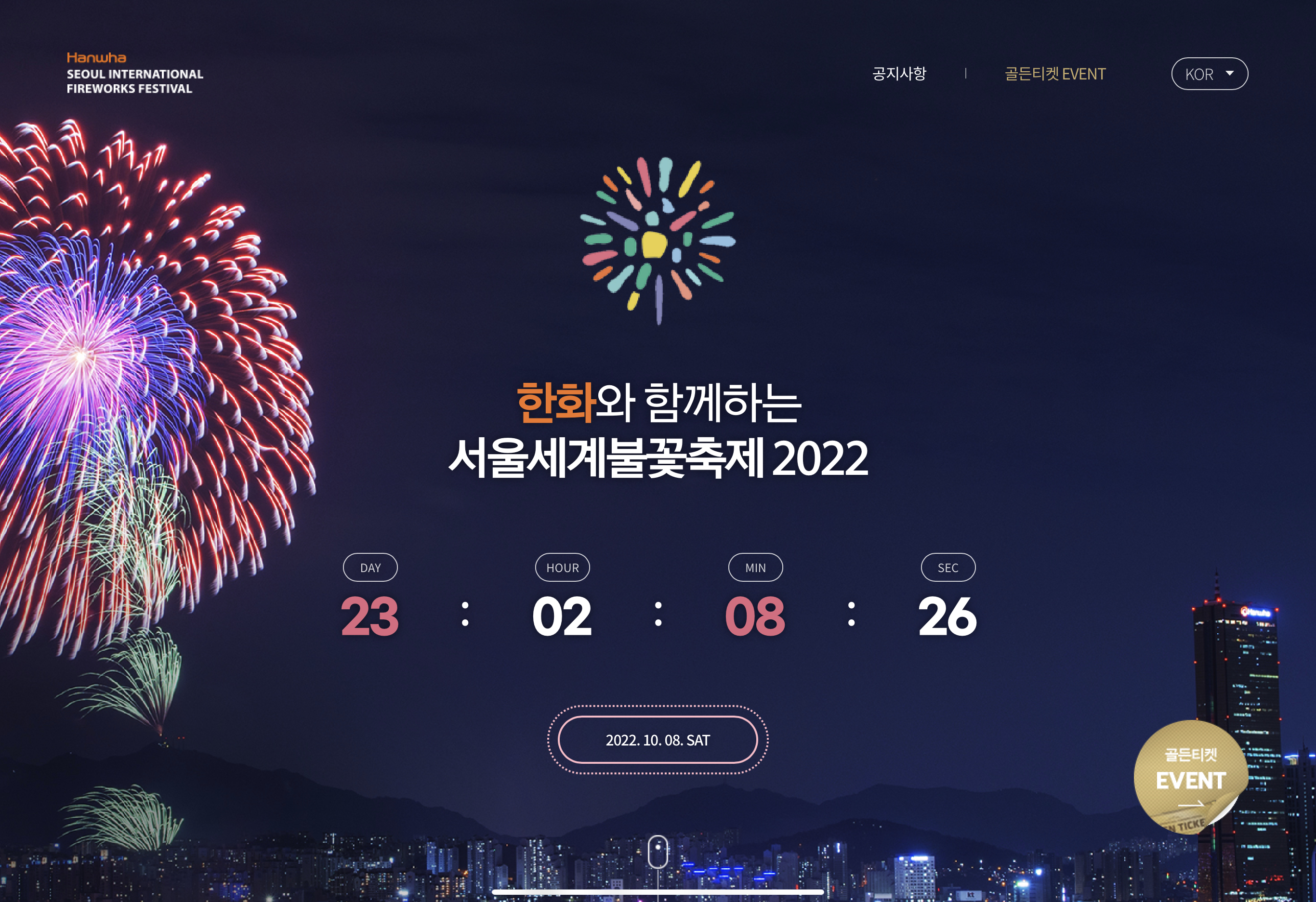 사실 여태 골든티켓 이벤트에 계속 응모를 했지만 단 한 번도 당첨이 되지 않았는데, 이번엔 꼭 골든티켓에 당첨되어 편하게 불꽃축제를 보고 싶습니다.