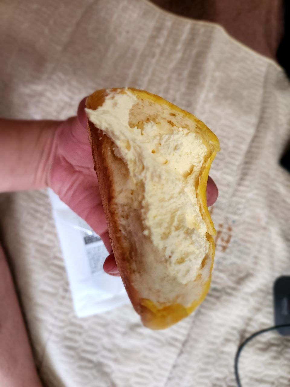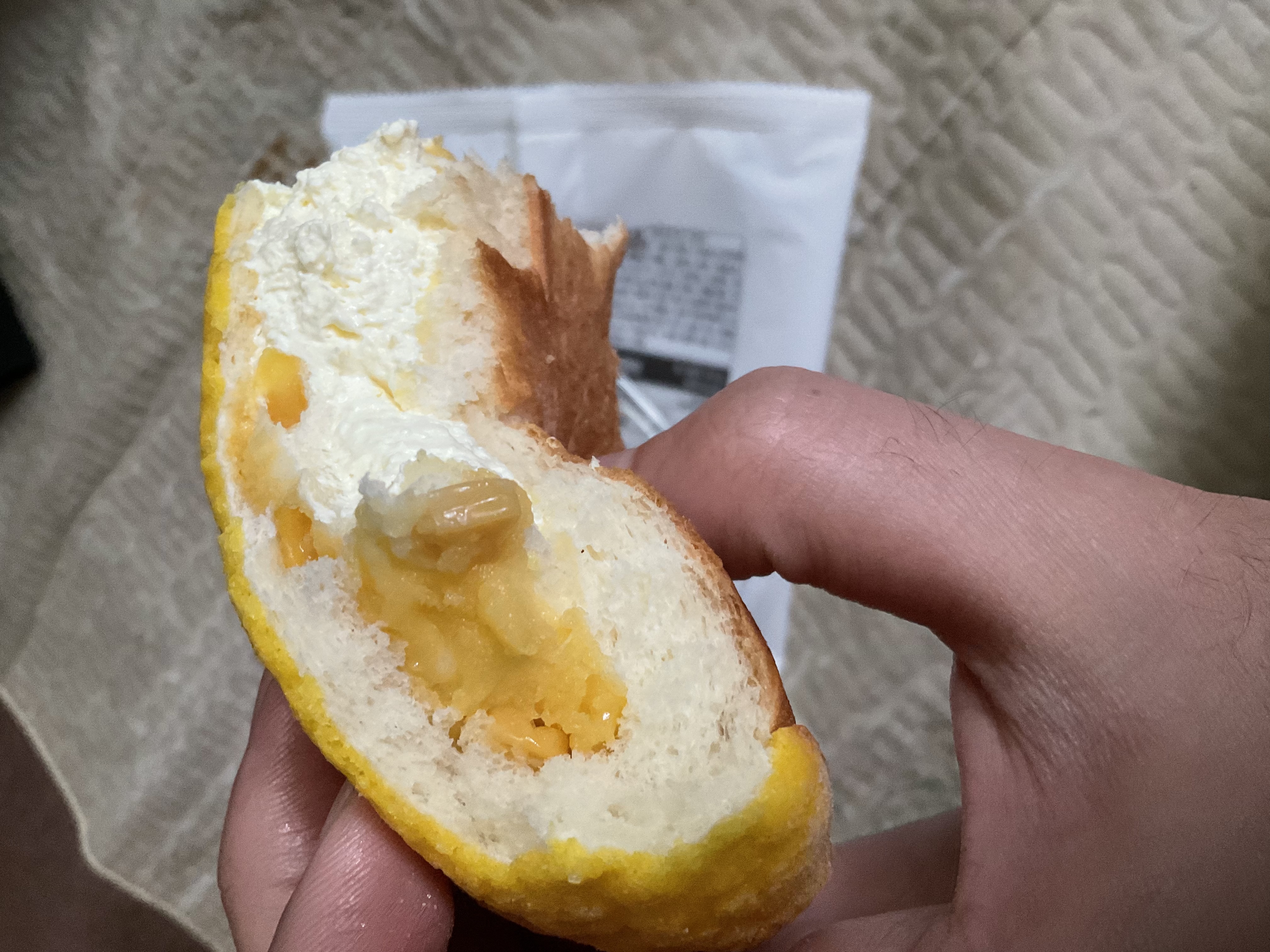 다만 제가 먹은 빵이 좀 특이하게 되어 있었습니다. 다른 맛의 경우 메론맛이나 단팥맛의 경우는 단팥이나 메론 크림이 아랫부분에, 생크림이 윗부분에 있었고, 초코맛이나 우유생크림맛의 경우는 생크림 자체가 우유생크림이거나 초코생크림입니다. 근데 제가 먹었던 옥수수빵의 경우는 생크림과 옥수수 부분이 수평으로 있었는데 아마 제가 먹었던 빵만 그랬던 것 같습니다.