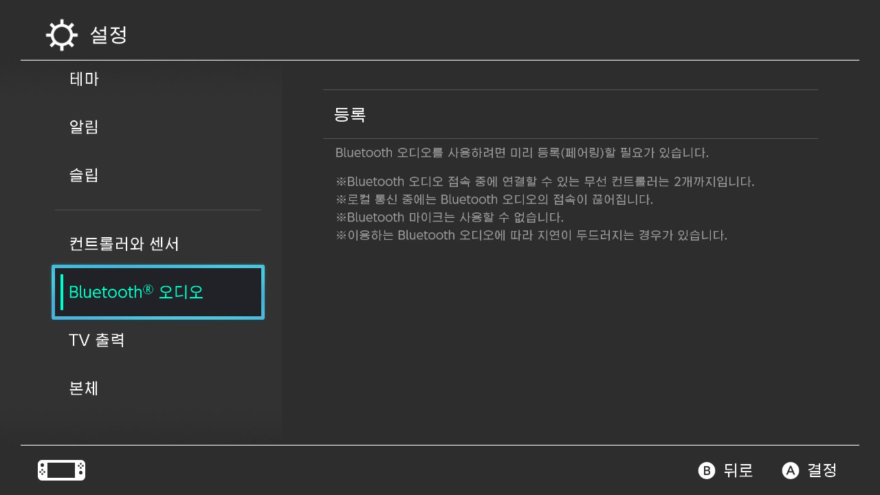 그렇다면 이어폰은 블루투스로 연결이 되지 않을까? 싶은 생각도 들겠지만 비교적 최근인 작년까지 블루투스를 통한 오디오 연결은 불가했습니다. 그러니까 에어팟이나 버즈나 소니의 블루투스 이어폰으로 직접 닌텐도 스위치로 연결, 페어링해서 사용하는게 작년까지는 불가능했습니다. 그래서 스위치의 USB단자에 블루투스 동글 장치를 꽂아서 간접적으로 연결하는 그런 경우도 있었습니다.