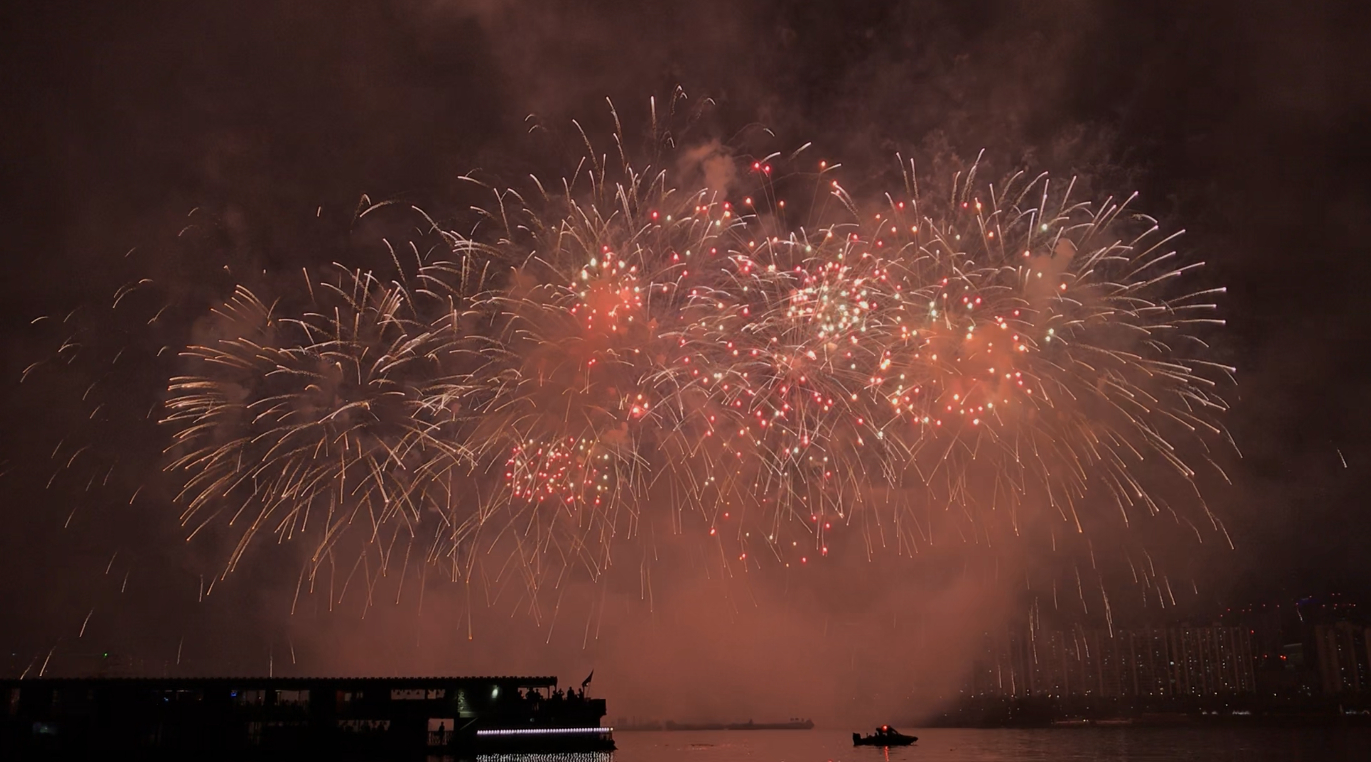다른 소리의 요소는 바로 폭발음입니다. 빛의 속도와 소리의 속도가 다르기 때문에 생기는 차이를 느껴보시면 좋겠습니다. 폭죽이 터지면 빛이 먼저 나고 그 다음 폭발음이 들리는데, 한강에서 멀어질수록 빛과 소리의 시간차가 더 벌어집니다. 여기에 폭발음이 상당히 크기 때문에 간혹 한강공원 근처에 주차된 차량의 경보음이 울리는 경우도 있습니다.