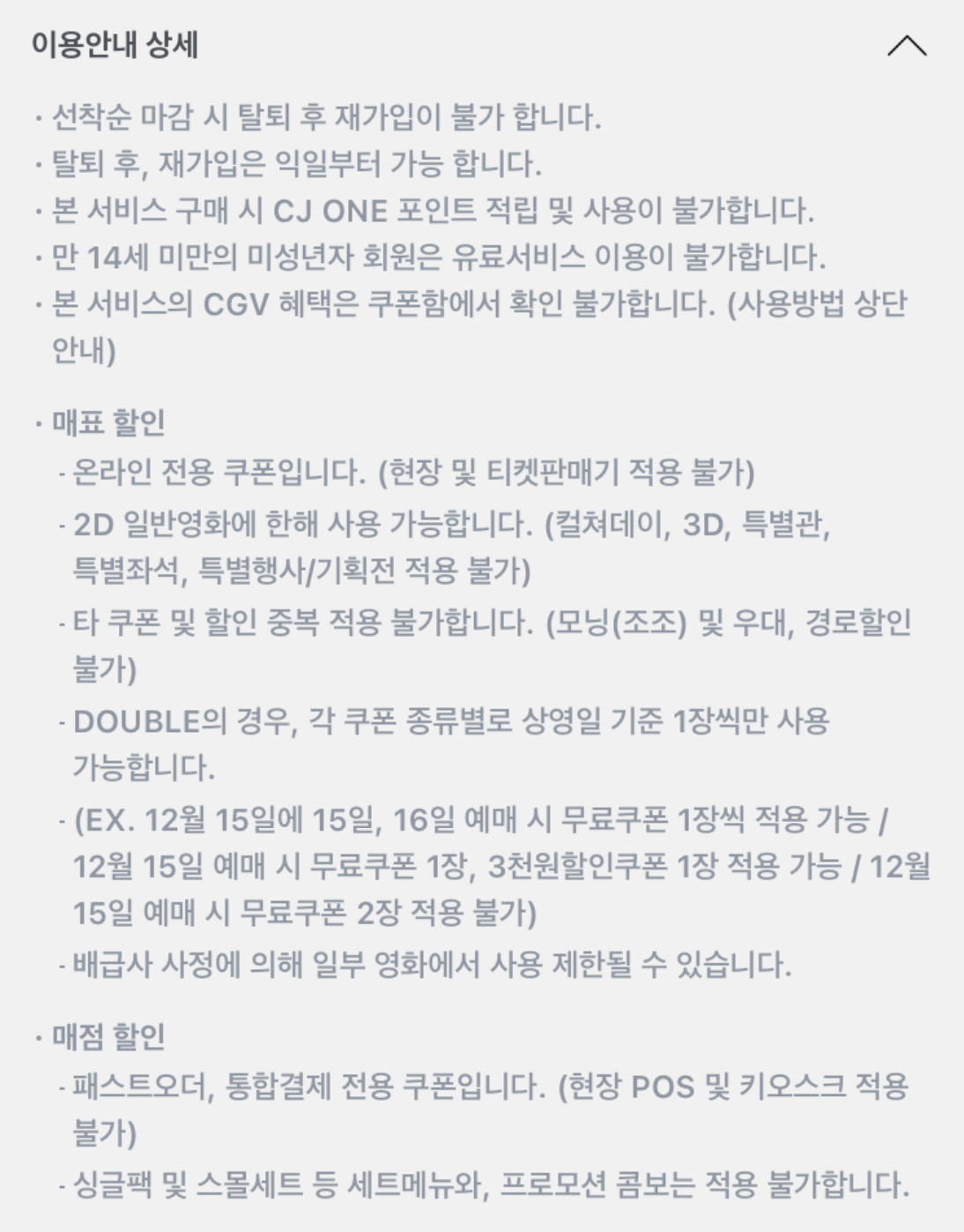 그렇지만 저는 극장에서의 영화관람을 우선하다보니 아래의 약관이 좀 더 신경이 쓰였습니다.