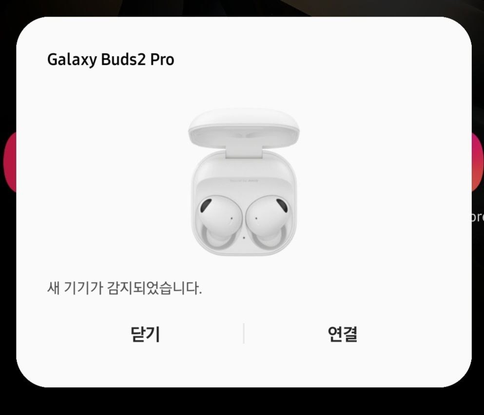 케이스를 열고 유닛을 꺼내면 바로 갤럭시 폰에서 연결할 것인지 물어봅니다.