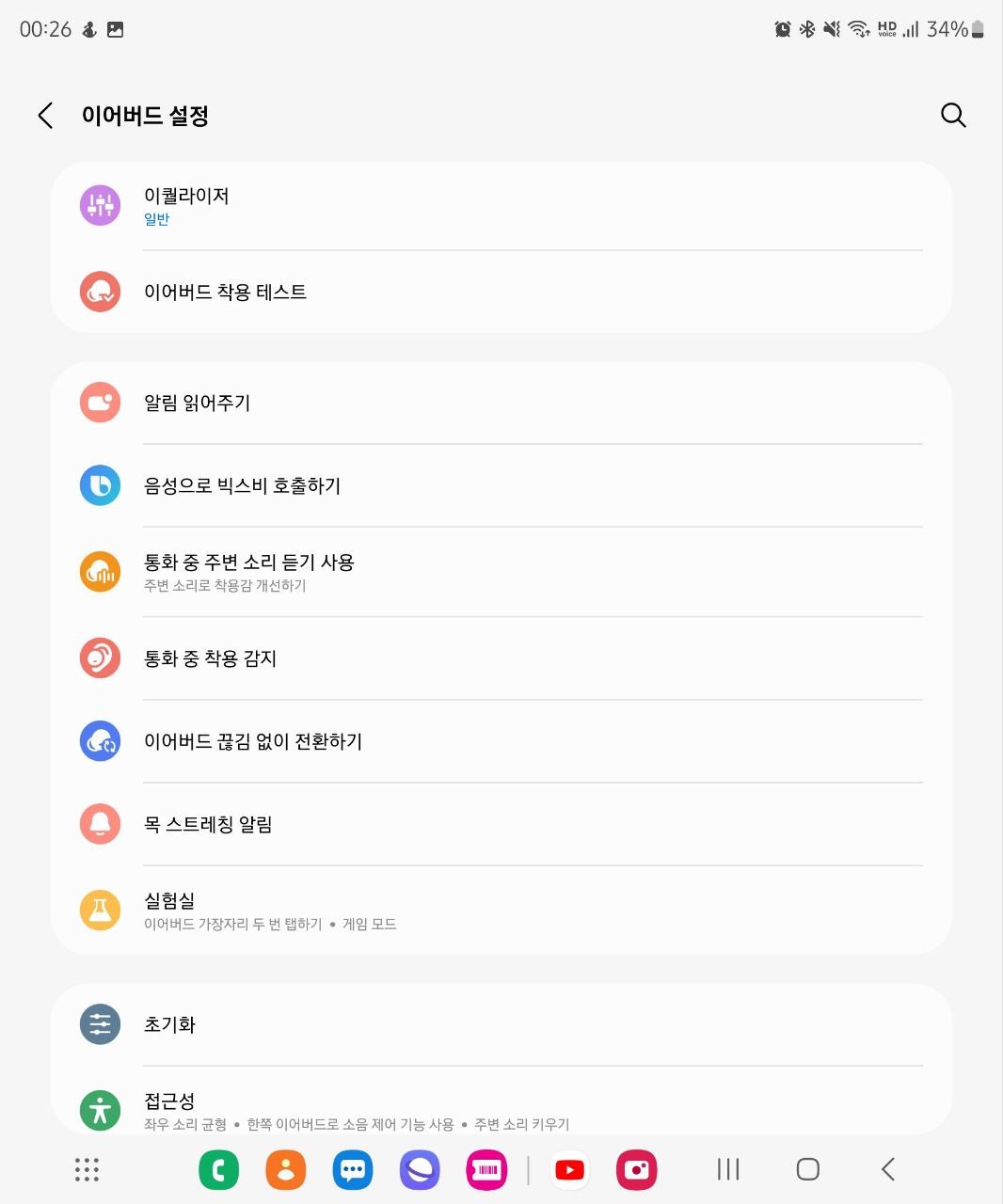 갤럭시 웨어러블을 통해서 버즈2 프로의 여러 설정을 만질 수 있습니다.