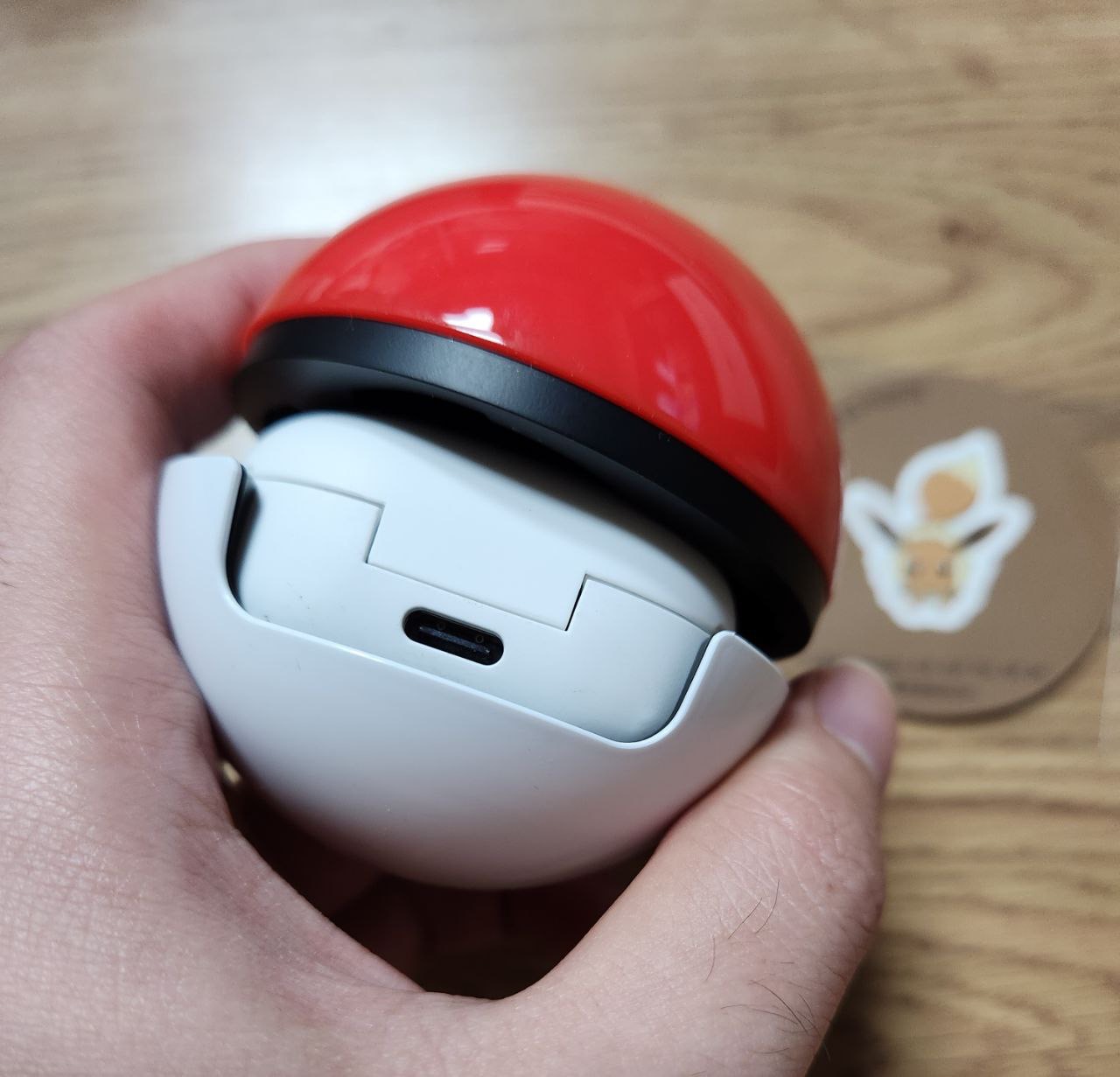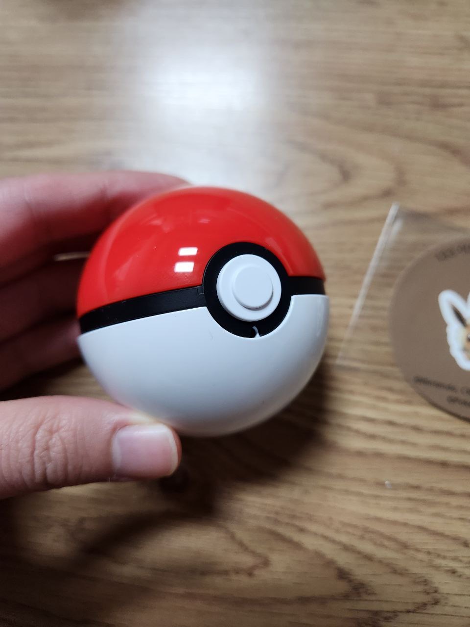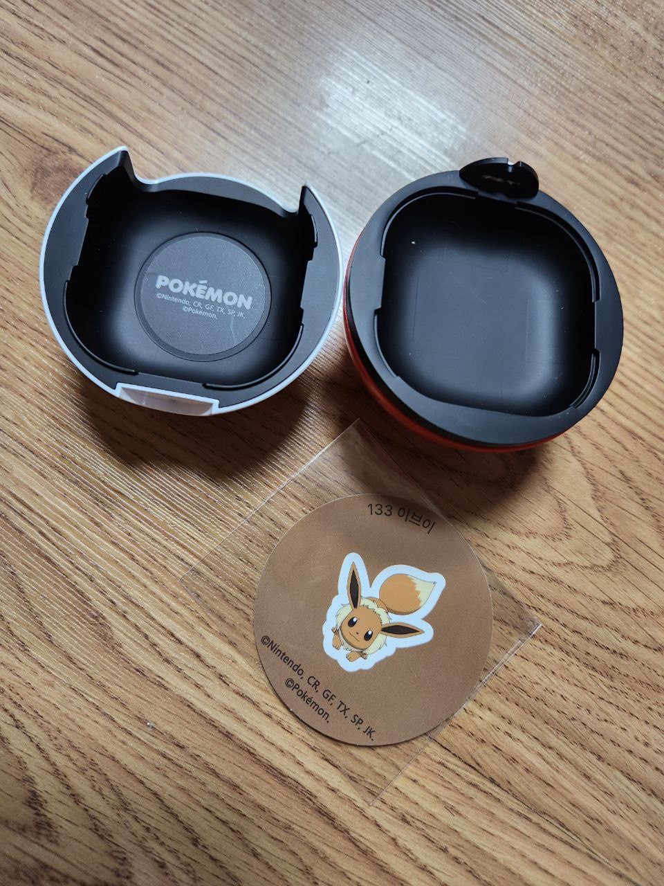 상자 안에는 이렇게 하얀색의 밑부분과 뚜껑부분의 빨간 부분이 있으며, 랜덤으로 포켓몬 스티커가 주어지는 듯 합니다. 저는 이브이가 나왔습니다.