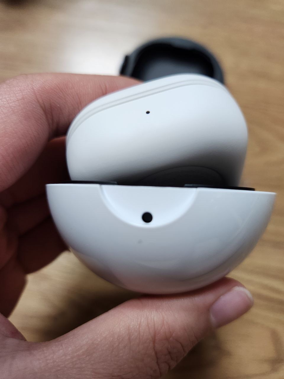 하얀색은 밑부분입니다. 버즈2프로 케이스의 위 아래를 올바르게 착용하면 됩니다.