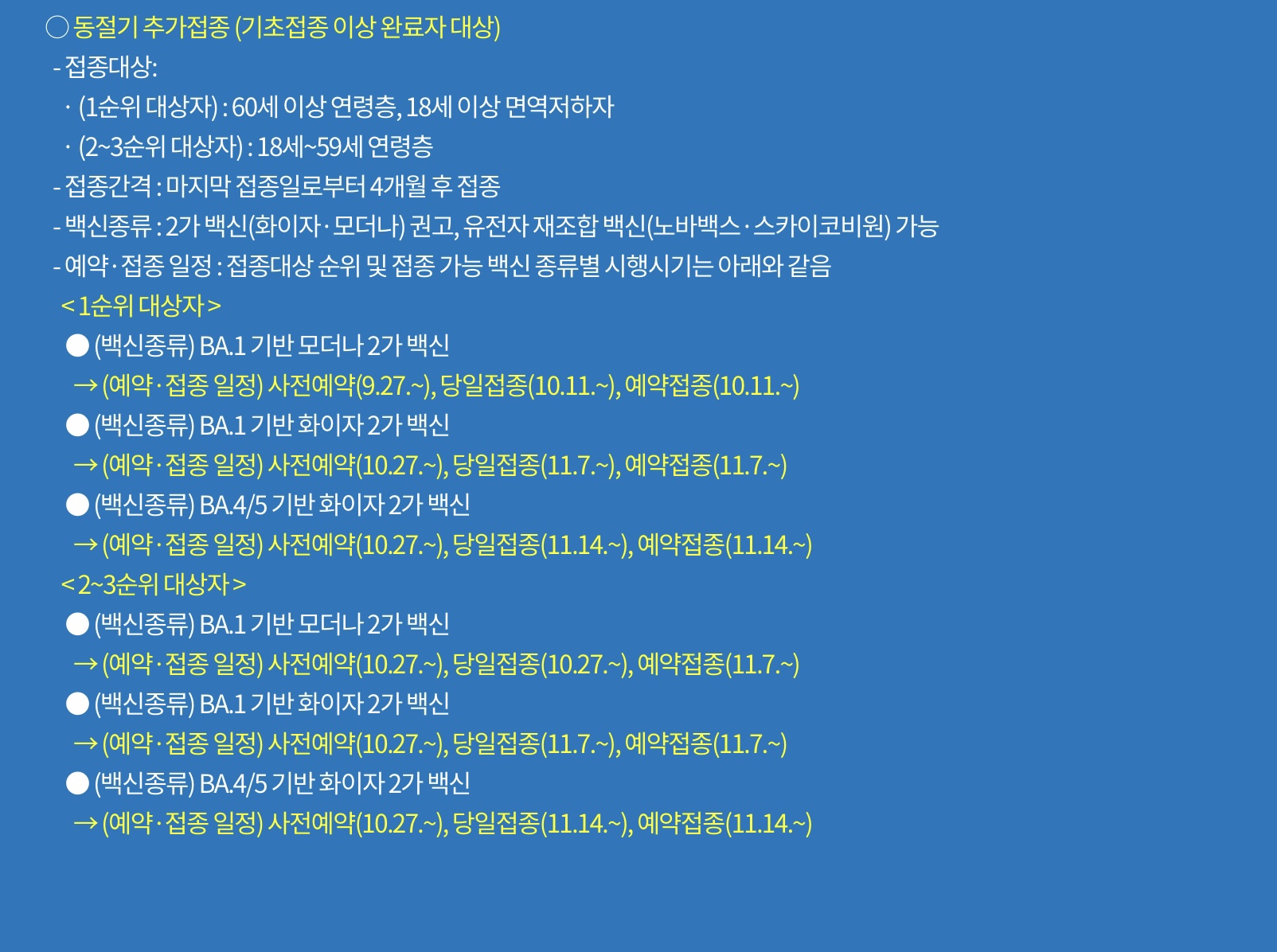 이번 개량백신은 특이하게 숫자를 붙이는 N차 접종~식의 이름이 아닌 동절기 추가접종이라는 이름으로 백신 접종이 진행이 됩니다.