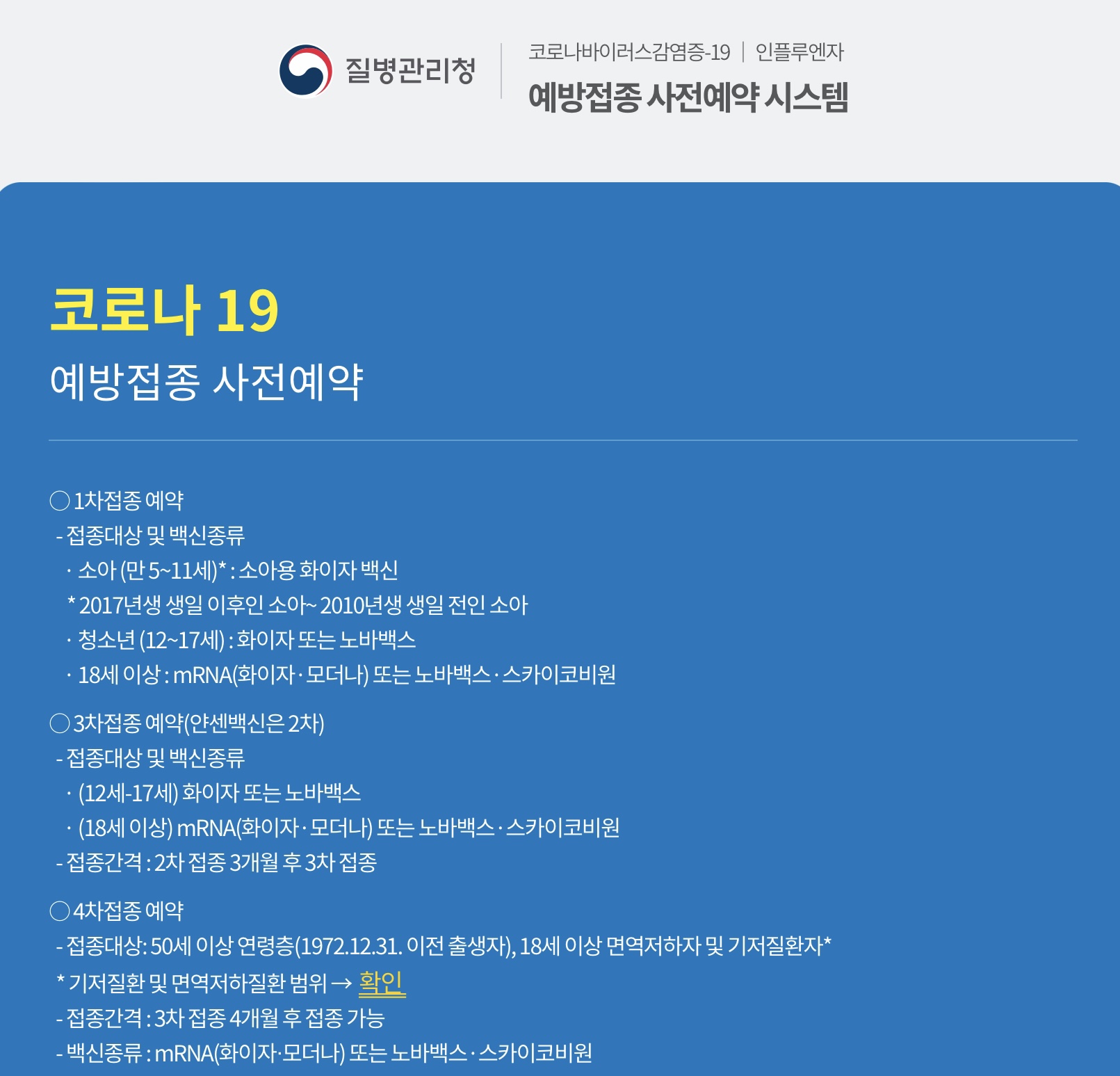 물론 기존의 코로나19백신 3차 4차 접종 예약도 계속 가능합니다.