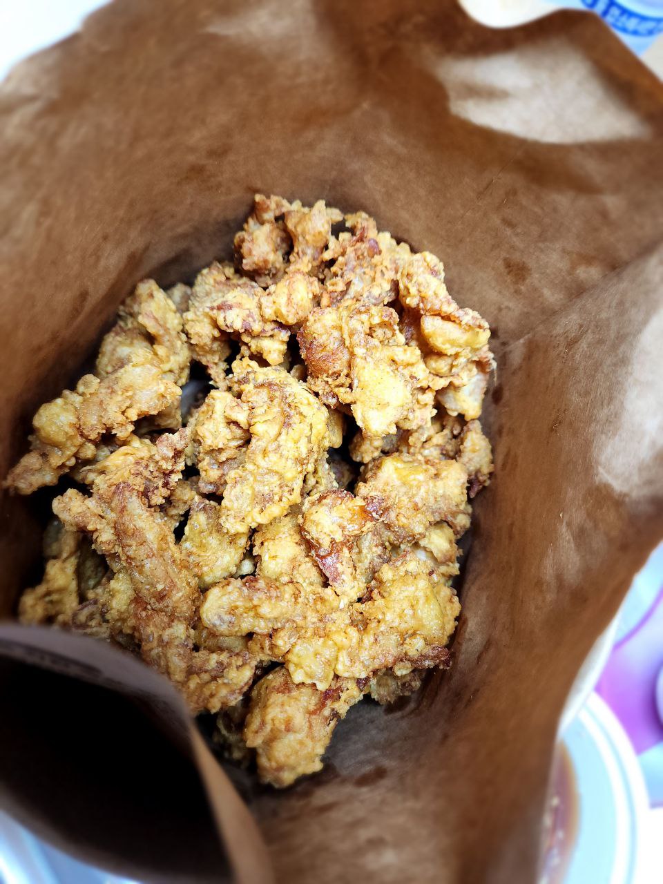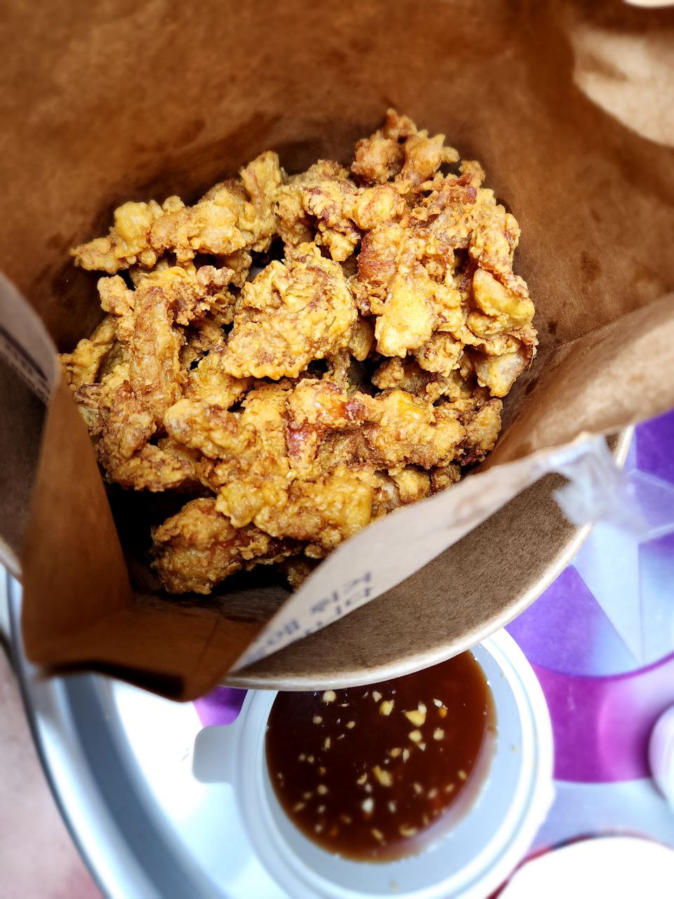 노랑통닭은 옛날 시장에 있는 전통적인 통닭집이란 컨셉으로 치킨을 팝니다. 그래서 배달이나 포장을 할 때도 이렇게 황색 종이 봉투에 담겨져 옵니다. 주로 순살류의 메뉴 선택지가 많습니다.