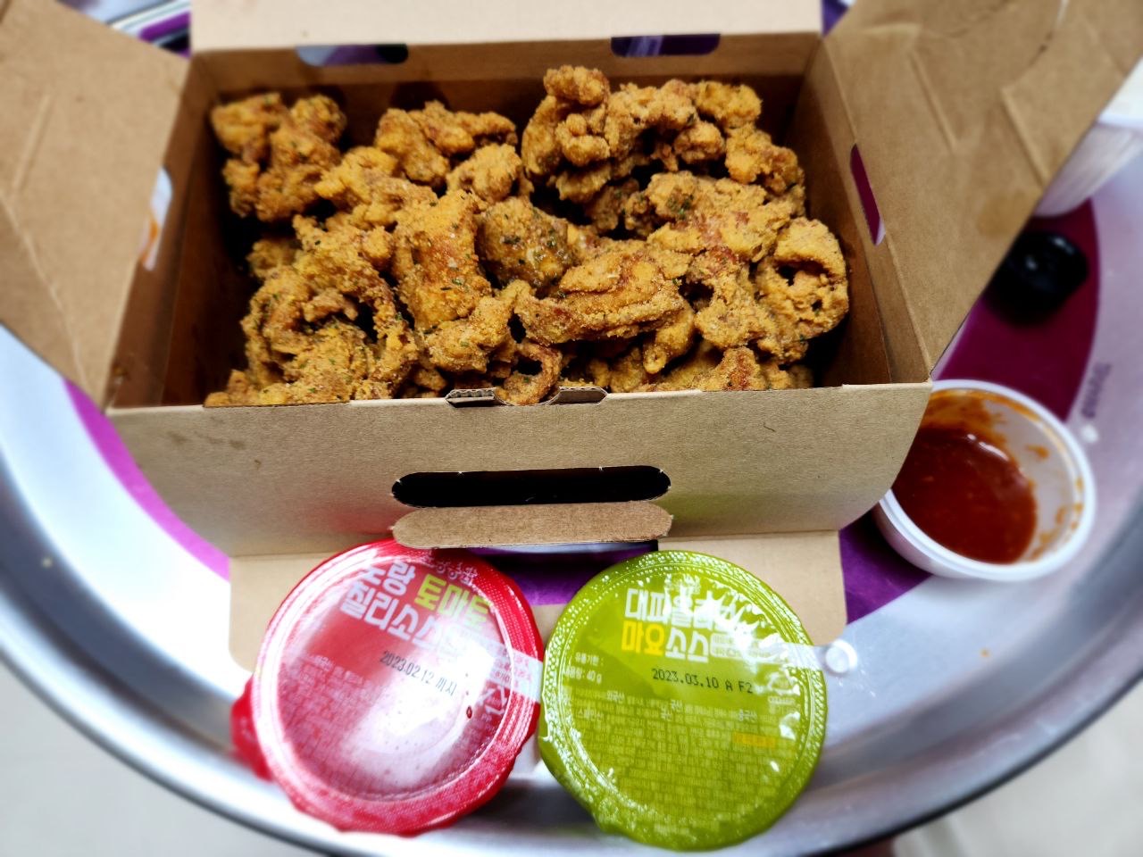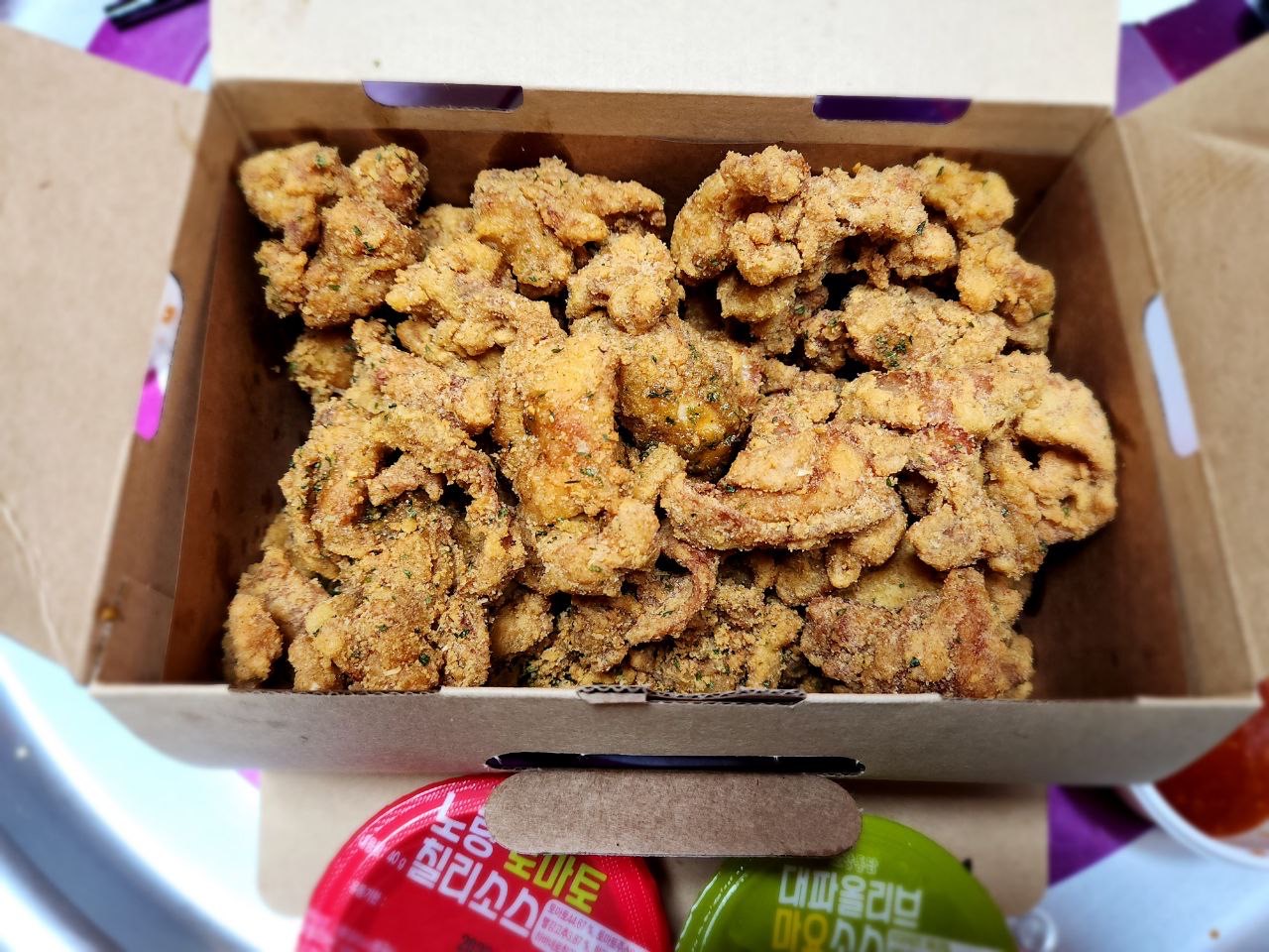 *이 치킨 역시 제가 제 돈으로 직접 사서 먹었습니다. 추가 소스 요금은 1000원이었습니다.