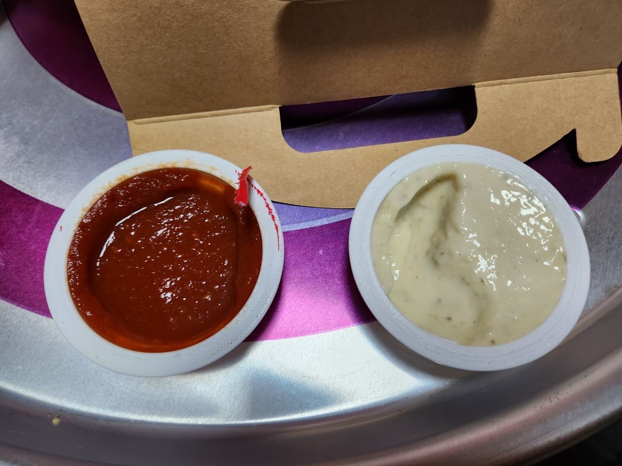 어느 소스를 드시던 조합이 괜찮기 때문에 취향에 맞게 선택하시면 됩니다. 다만 저는 두 가지 소스를 모두 주문하시고 드시는 것을 추천합니다. 둘다 괜찮은 맛이라 하나만 있으면 굉장히 허전하기 때문입니다.