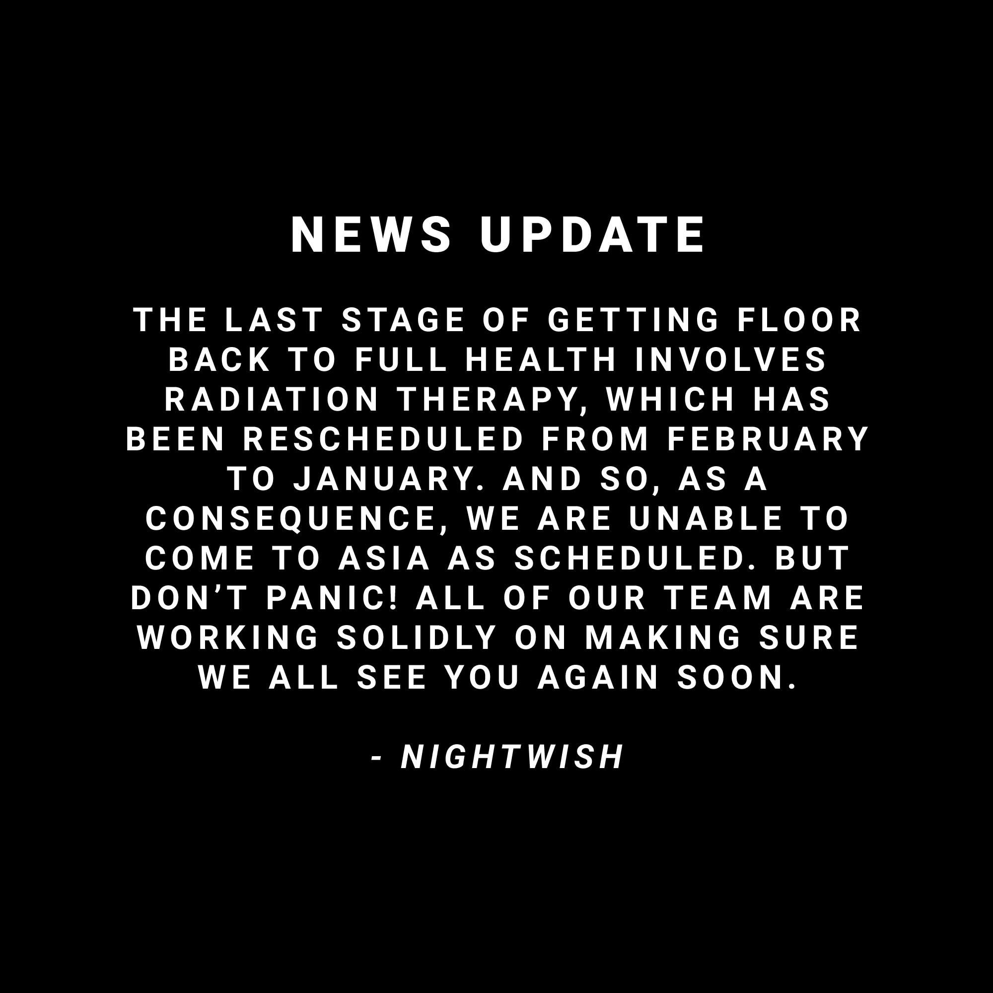 다만 한 가지 변수가 생겼는데 지난 10월 말, 현재 3대 보컬인 플로어 얀센이 유방암에 걸린 이후로 2월에 진행될 방사선 치료 일정이 1월로 앞당겨지면서 아시아 지역 공연 일정에 변경이 있을 예정이라고 합니다. 원래 내한 공연 일정은 1월 23일 월요일 설 연휴에 있을 예정이었습니다. 현재 나이트위시 공식 사이트에선 티켓 예매 사이트로 가는 링크가 안내 공지문으로 막혀 있습니다.얀센 보컬의 빠른 쾌유를 기원하고, 동시에 공연 일정이 다시 정상적으로 결정이 되었으면 좋겠습니다.