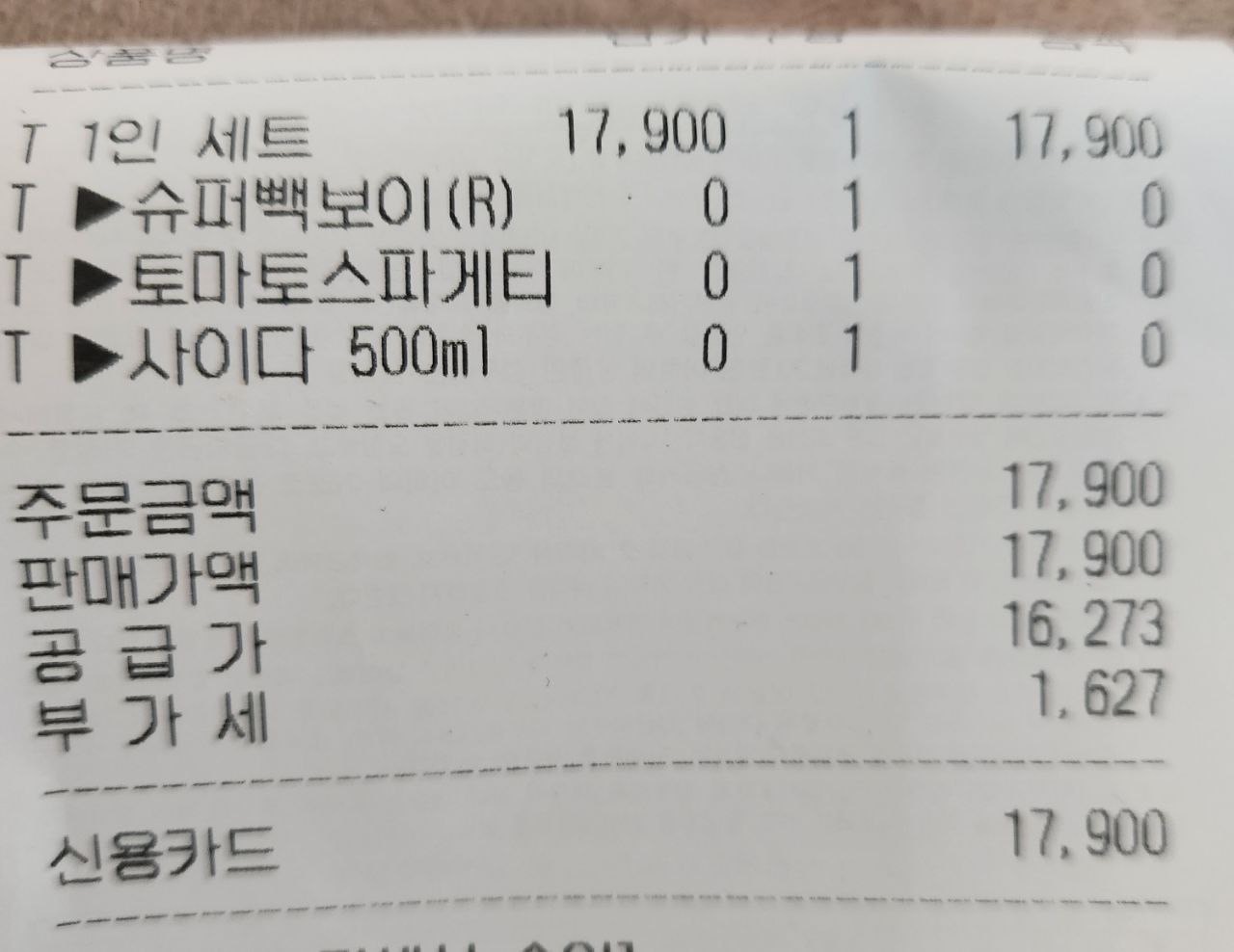 최소가격이 17900원인데, 가장 기본 피자 메뉴인 슈퍼빽보이 피자를 주문했을 때의 기준이고, 다른 피자 메뉴를 선택하면 추가요금이 붙는 방식입니다. 스파게티는 토마토치즈, 로제치즈 두 개가 있는데 이번에 먹은 것은 토마토 치즈 스파게티였습니다. 둘 다 가격은 동일합니다. 피클은 포함되지 않았는데 별도 요금으로 추가해야 합니다.