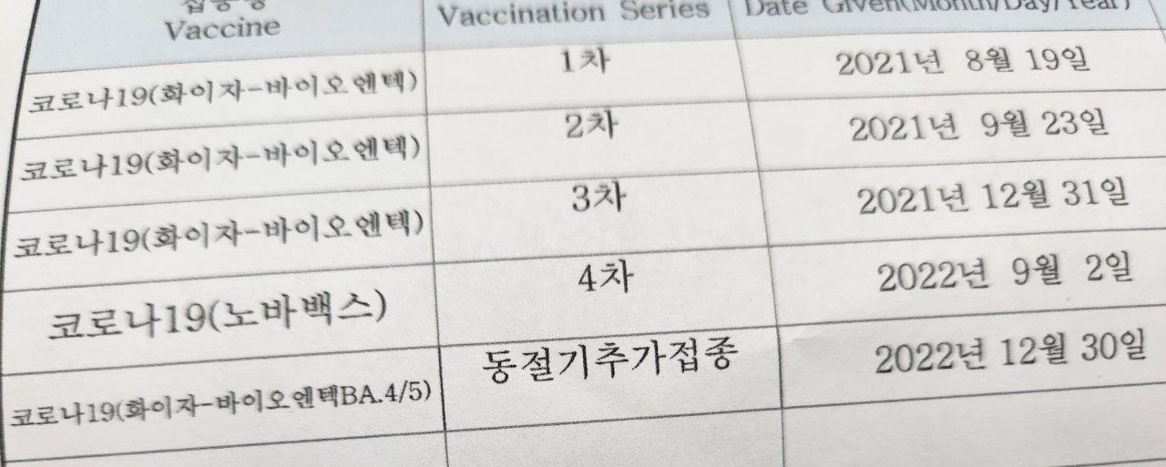 안녕하세요, 실버입니다. 작년 연말 12월 30일에 개량백신인 2가 백신을 접종했었습니다.