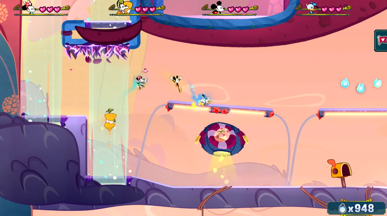 최대 4인까지 미키마우스 등 디즈니 캐릭터를 움직이며 모험을 하는 게임같습니다.