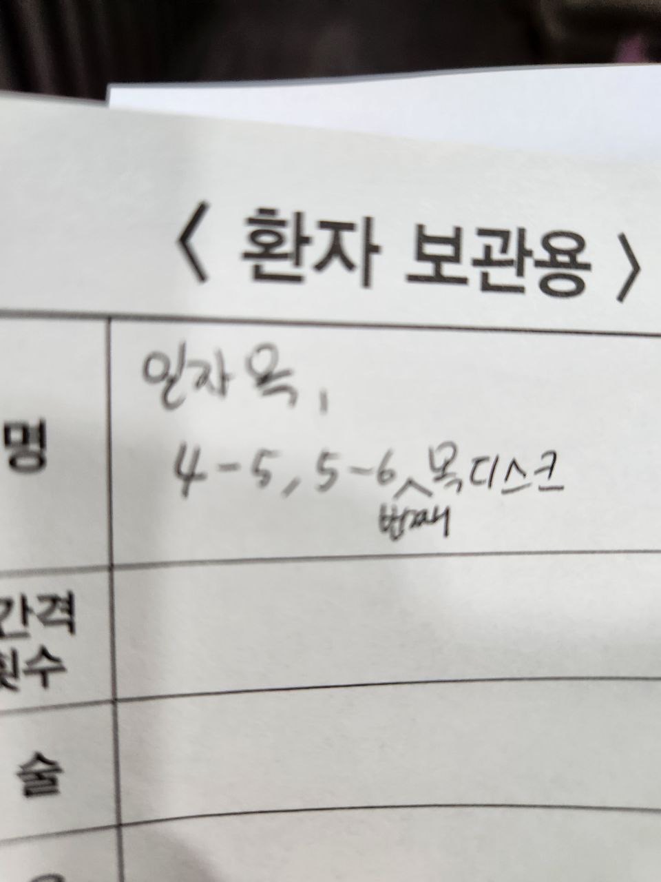 그러다보니 디스크에 가해지는 압력이 상당히 높아졌고, 4~5번, 5~6번 디스크가 문제가 생겼다고 합니다. 일단은 약 처방을 받고 통증 완화에진전이 있는지 한 번 보기로 했고, 그럼에도 통증이 계속 지속되면 주사나 도수치료를 진행하려고 합니다.