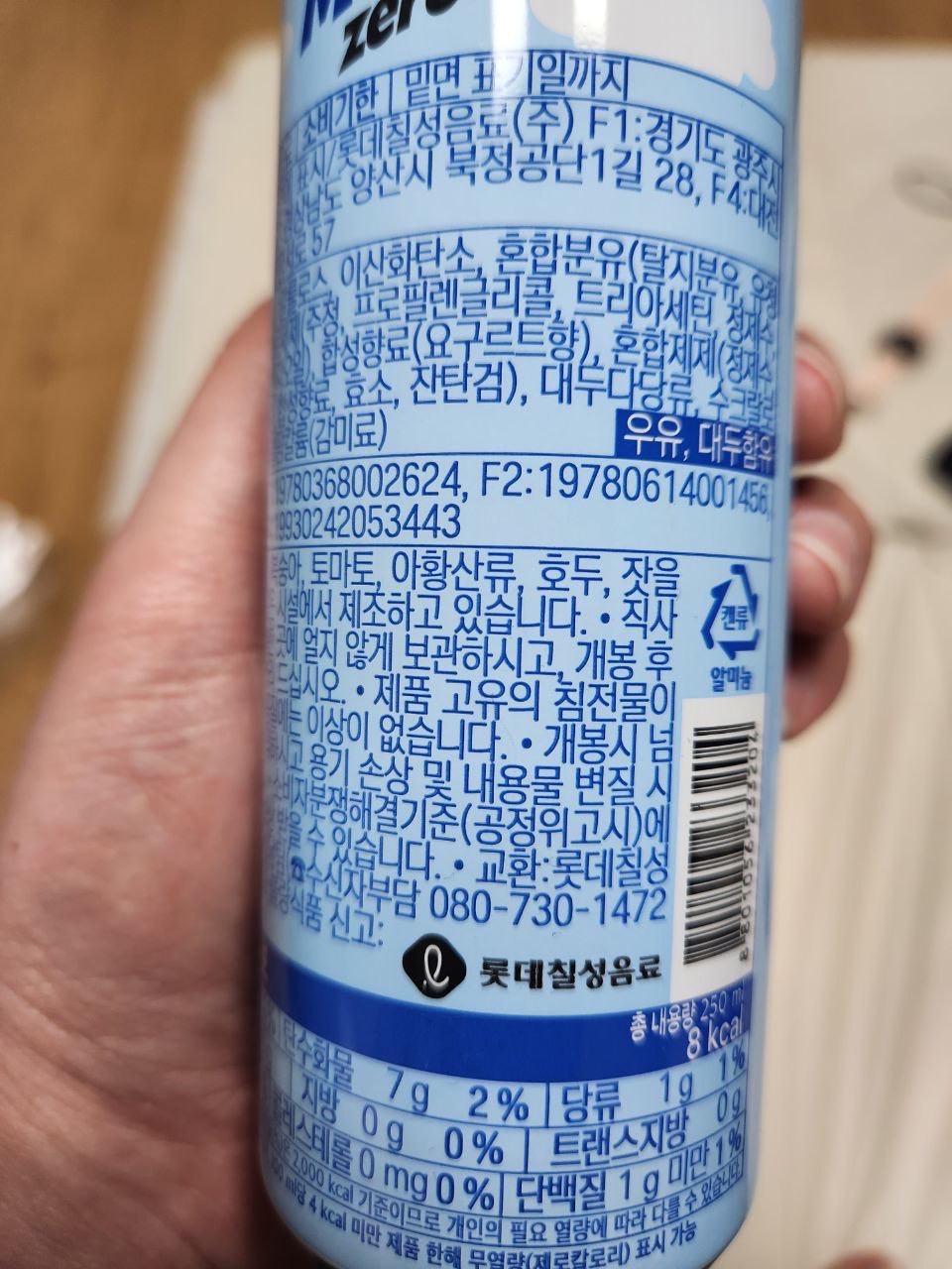 100ml당 4kcal 미만이면 무열량, 제로칼로리 음료라고 할 수 있다고 합니다. 즉 전체 250ml에 8kcal가 있다고 하더라도 100:4 라는 비율로계산하면 250ml 기준으로 10칼로리가 넘지 않기 때문에 여전히 밀키스 제로라고 불러도 문제가 없다는 것이라고 합니다.
