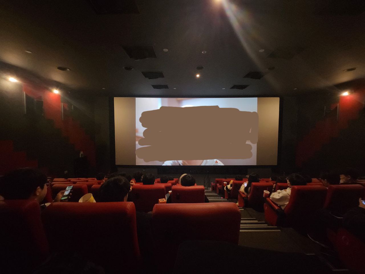 구조적인 면에선 코엑스 돌비시네마관의 느낌과 비슷합니다. 축소판같이 느껴지기도 합니다. 스코프비율의 스크린과 하단 배치 등에서 그런 느낌이 들었습니다. 단차는 나쁜 편이 아니지만 하단 배치다 보니 앞자리의 관객이 앞으로 고개를 쑥 내밀면 스크린의 일부가 쉽게 가려지곤 합니다. 또, 정중앙에 입장 통로가 있다 보니 상영이 시작되고 늦게 들어오는 관객의 존재감이 상당히 부각됩니다. 구조적으론 이런 아쉬움이 들었습니다.