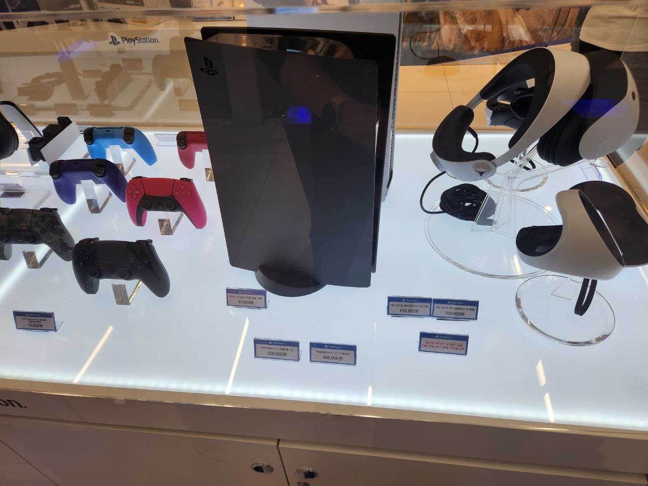 그 외엔 플스5 본체, VR2, 다양한 색상의 듀얼센스, 그리고 교체할 수 있는 검은색 콘솔 본체 커버도 판매중이었습니다.