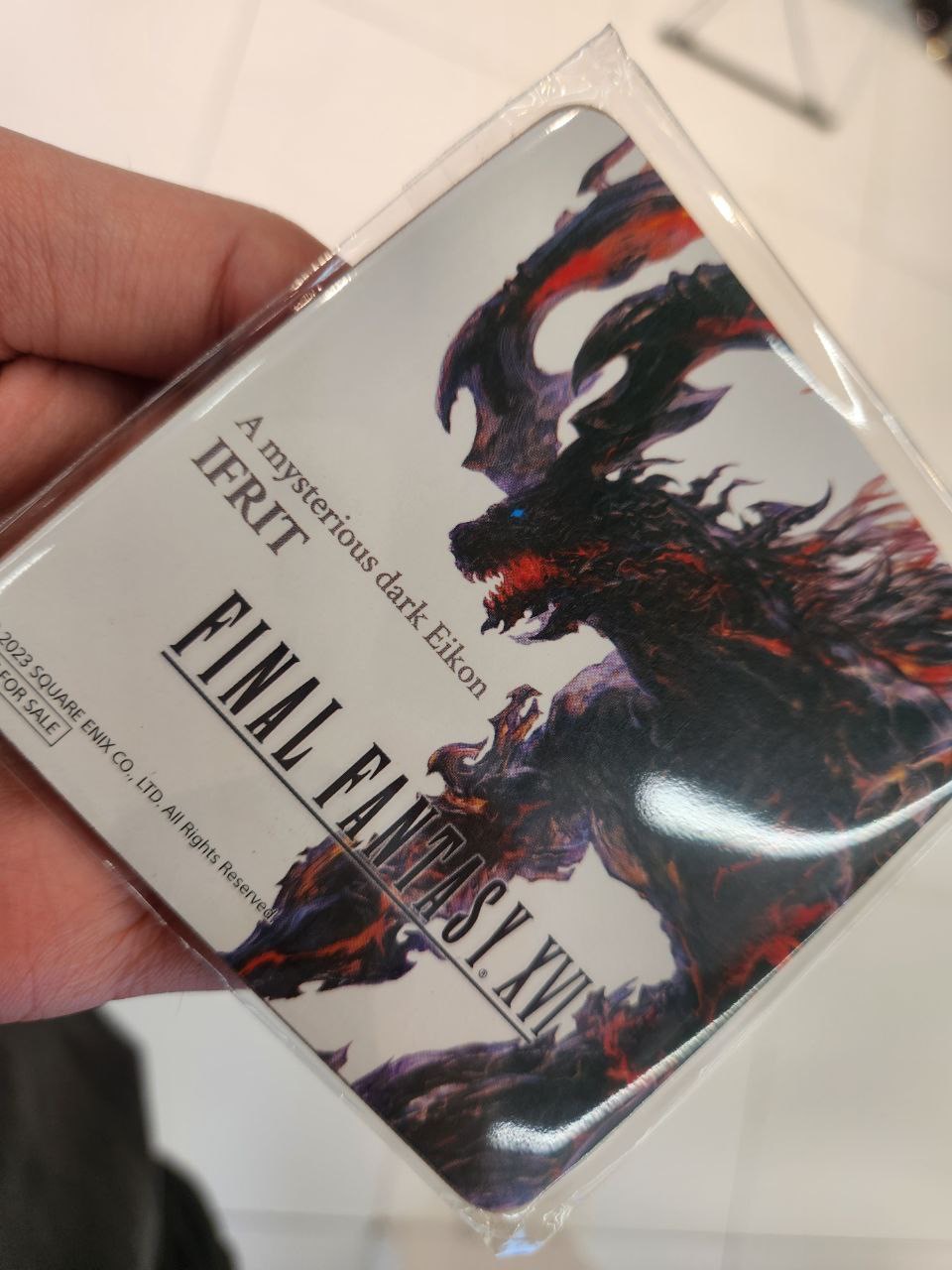 이미 플스5도 있고 게임도 구매한 분들에게 한 가지 즐길 요소는 컵 코스터를 뽑을 수 있는 크레인 게임기가 있습니다. 현장에서 SNS 해시태그 작성 이벤트를 참여하면 소환수 코스터를 증정합니다. 안에 무엇이 들었는지는 랜덤이었는데 저는 이프리트 코스터가 당첨되었습니다.