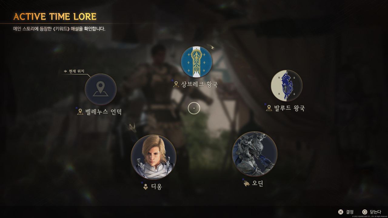 이번 파판16은 특이한 점이 있는데 컷씬을 통해 이야기가 진행되는 동안 잠깐 멈춰서 현재 상황의 설정을 읽어 볼 수 있는 ‘액티브 타임 로어’기능을 만들었습니다. 컷신을 보다 중간에 멈춰서 메뉴를 통해 액티브 타임 로어를 실행하면 위의 이미지와 같이 컷신에서 언급되는 요소들의 대한 설명을 볼 수 있습니다. 컷신의 내용에 따라 실시간으로 볼 수 있는 항목들이 달라지므로 컷신을 보다가 중간에 ‘쟤가 누구였지?’ ‘누가 누구를 공격한다고?’ 등등 헷갈릴 때 참고하면서 볼 수 있습니다. 진행되는 이야기에 온전히 집중할 수 있도록 이렇게 게임 내 시스템적으로 구성이 되어 있는점이 상당히 인상적이었습니다.