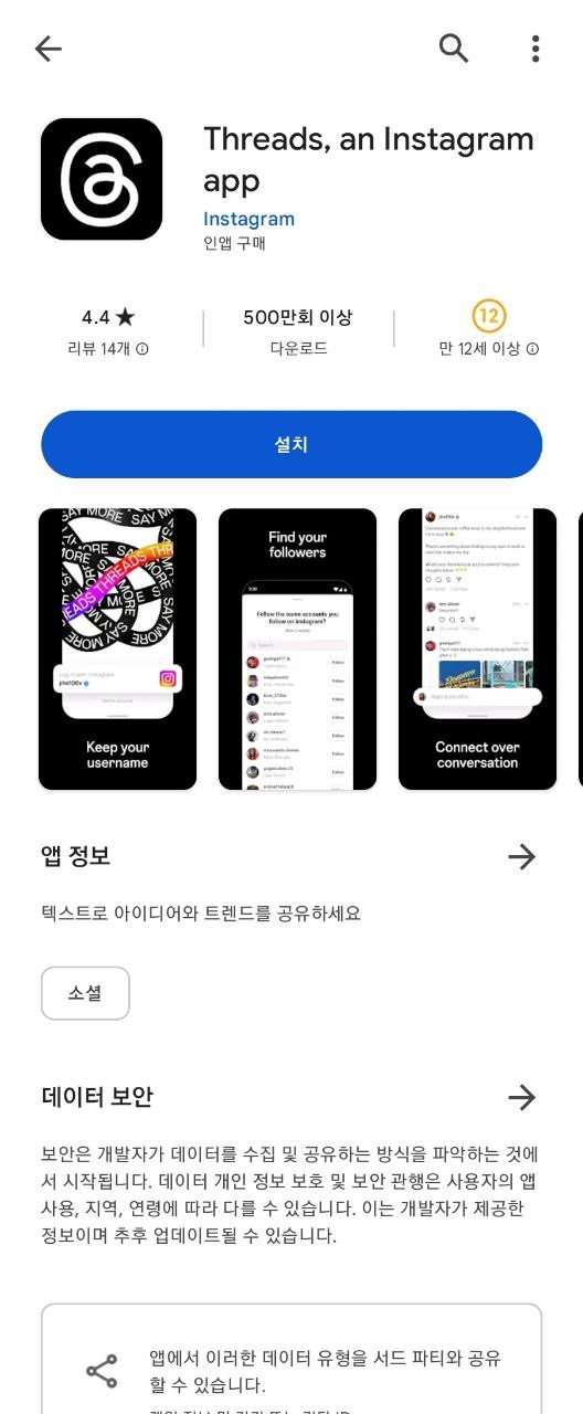 일단 메타에서 만든 앱입니다만, 인스타그램 플랫폼을 바탕으로 한 텍스트 SNS입니다.