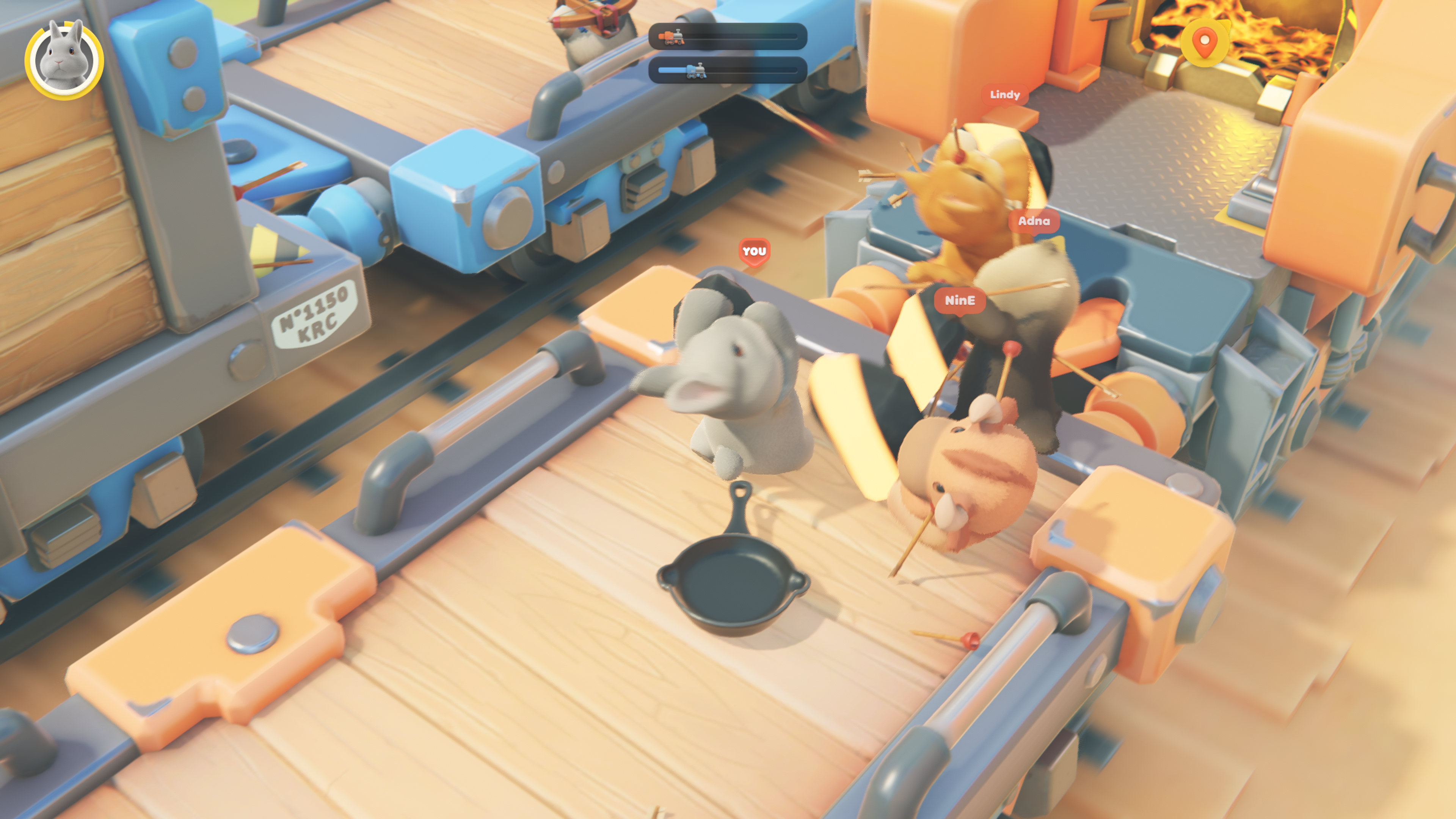 맵에 따라 2:2:2:2 이렇게 4팀이 맞붙거나 4:4 대항전이 되기도 합니다. 보통 4팀으로 대결하면 상대방을 맵 밖으로 던지고 마지막까지 살아남는 방식이고, 4:4 대항전의 경우 축구처럼 상대방 골대 진영에 공을 넣거나, 석탄을 화로에 운반해 더 빨리 우리 팀 기차 속도를 높이거나 식의 협동대항전 방식으로 진행이 됩니다.