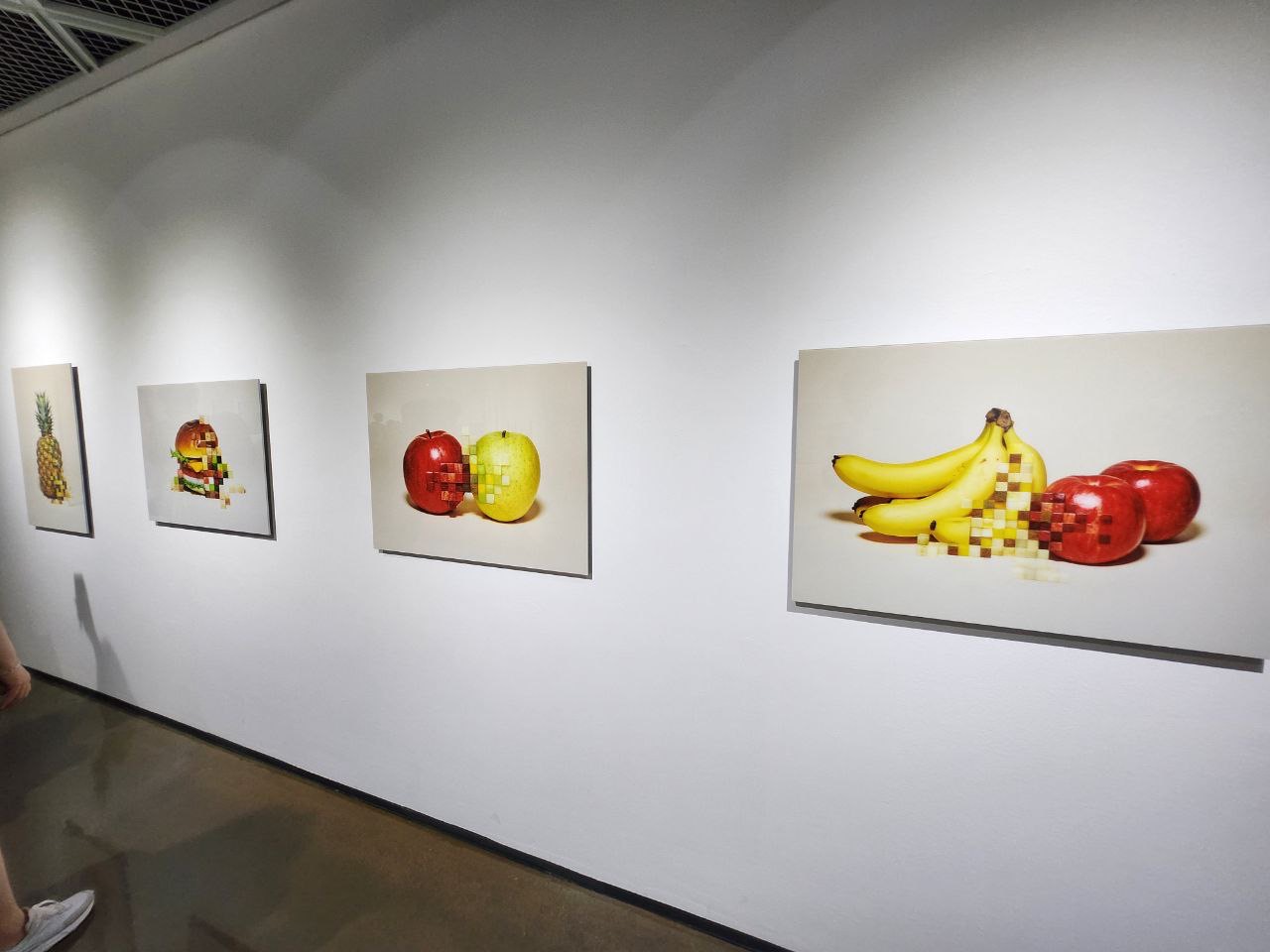 특히 중간마다 일정한 크기로 마치 픽셀처럼 여러 색의 과일을 조각내었는데