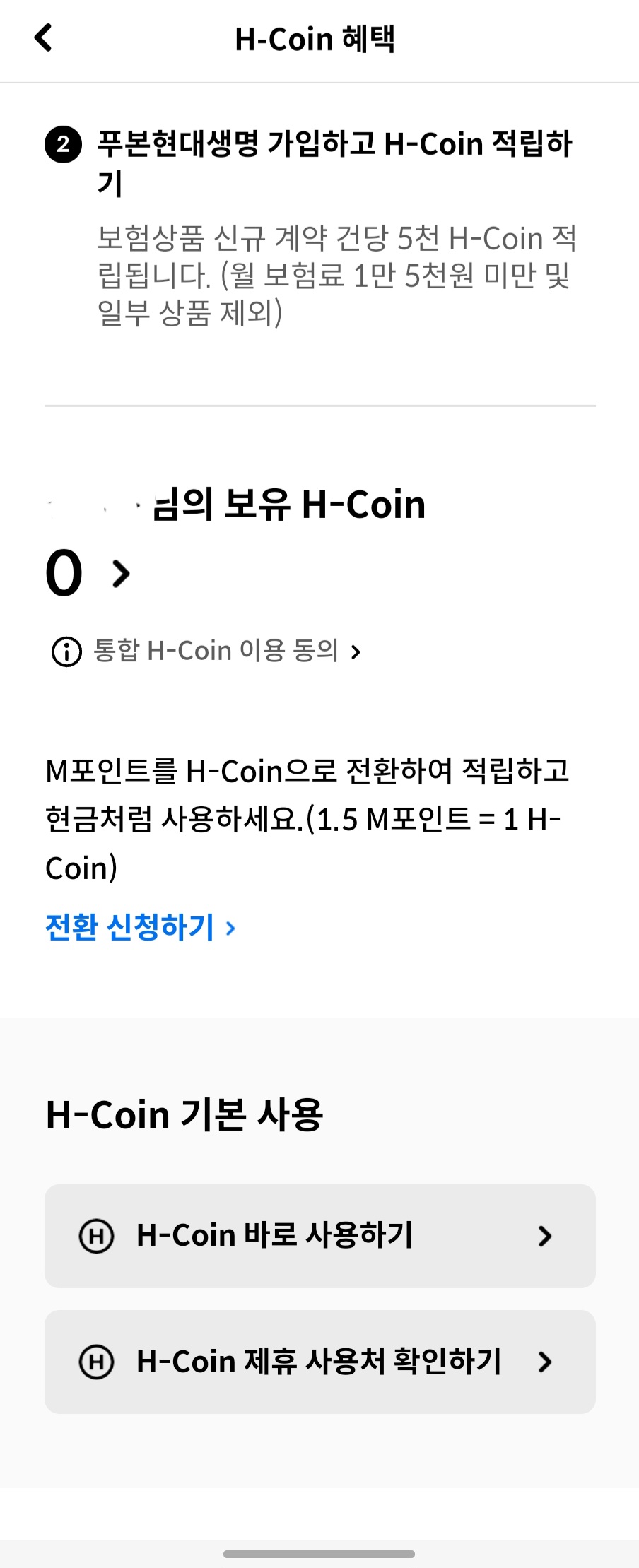 여기서 보유하고 있는 m포인트 중 얼마나 H-Coin으로 바꿀 것인지를 정할 수 있습니다.