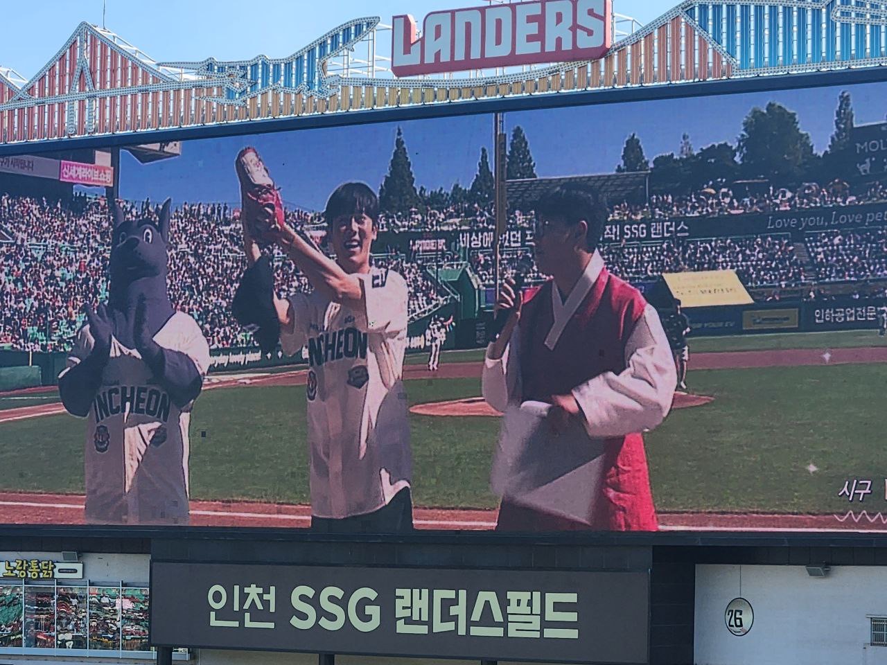최근 굉장한 인기를 얻고 있는 디즈니 플러스 드라마 ‘무빙’의 주인공 김봉석 역할을 맡은 이정하 배우가 시구를 하는 날이었기 때문입니다. 동생이 꼭 이 날 야구를 보러 가자고 해서 관람을 했습니다.