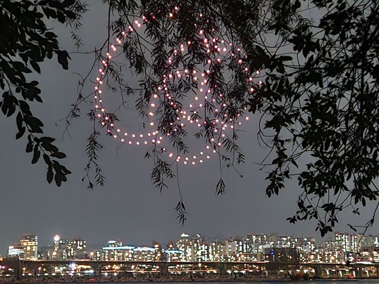 막상 불꽃축제 당시의 불꽃들의 폭발력을 감당하지 못했던 것인지 일부 드론들이 빛을 못내고 군데군데 비어있는 모양이었습니다. 내년에도 불꽃 드론 연출이 있었으면 좋겠습니다만, 아무래도 불꽃들의 폭발력 때문에 극 초반에만 활용될 수 밖에 없을 것 같다는 생각입니다.