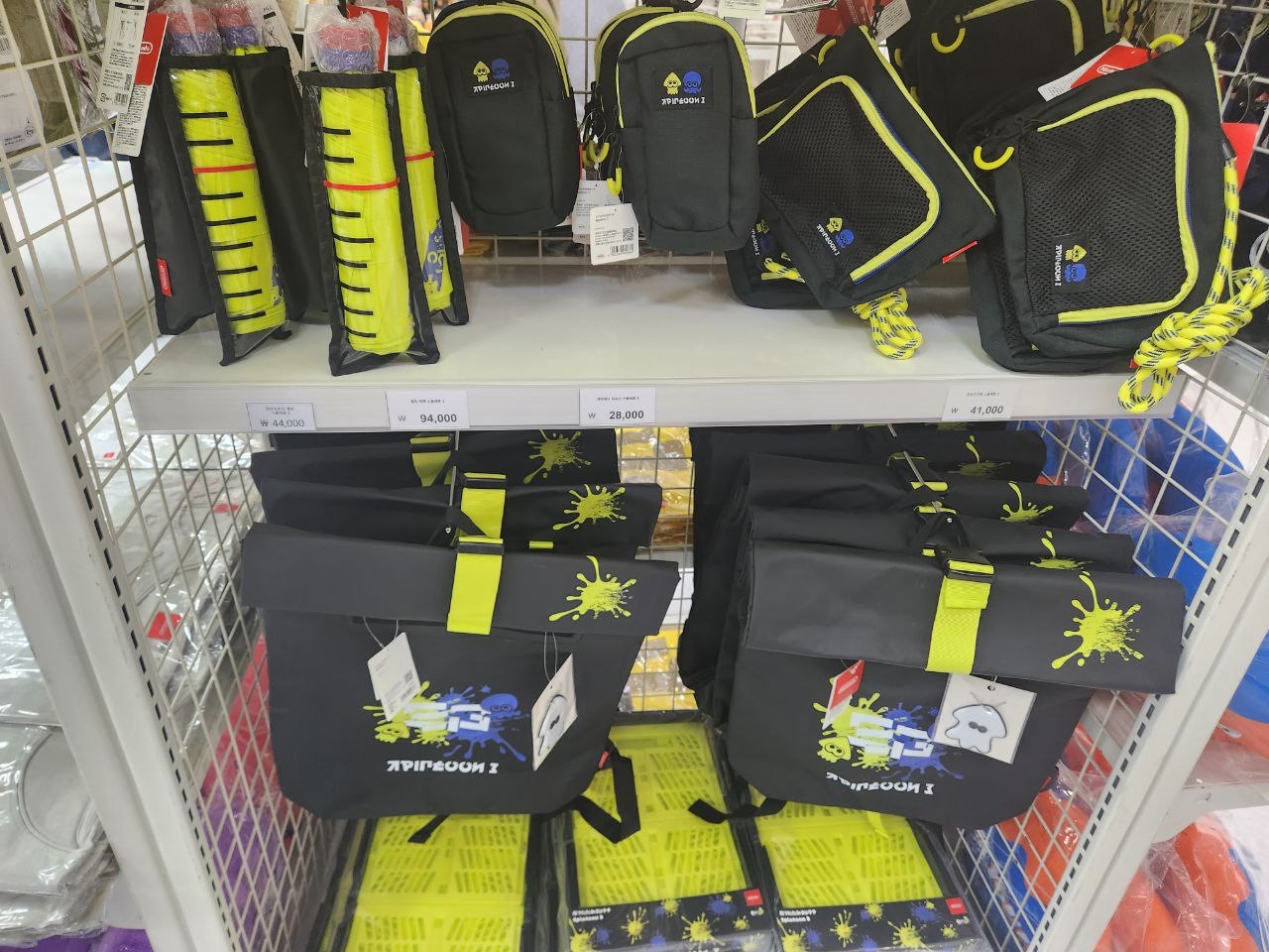 이외에도 스플래툰 굿즈들은 인형이나 쿠션 외에도 가방쪽같은 악세서리 위주로 잘 꾸려졌습니다.