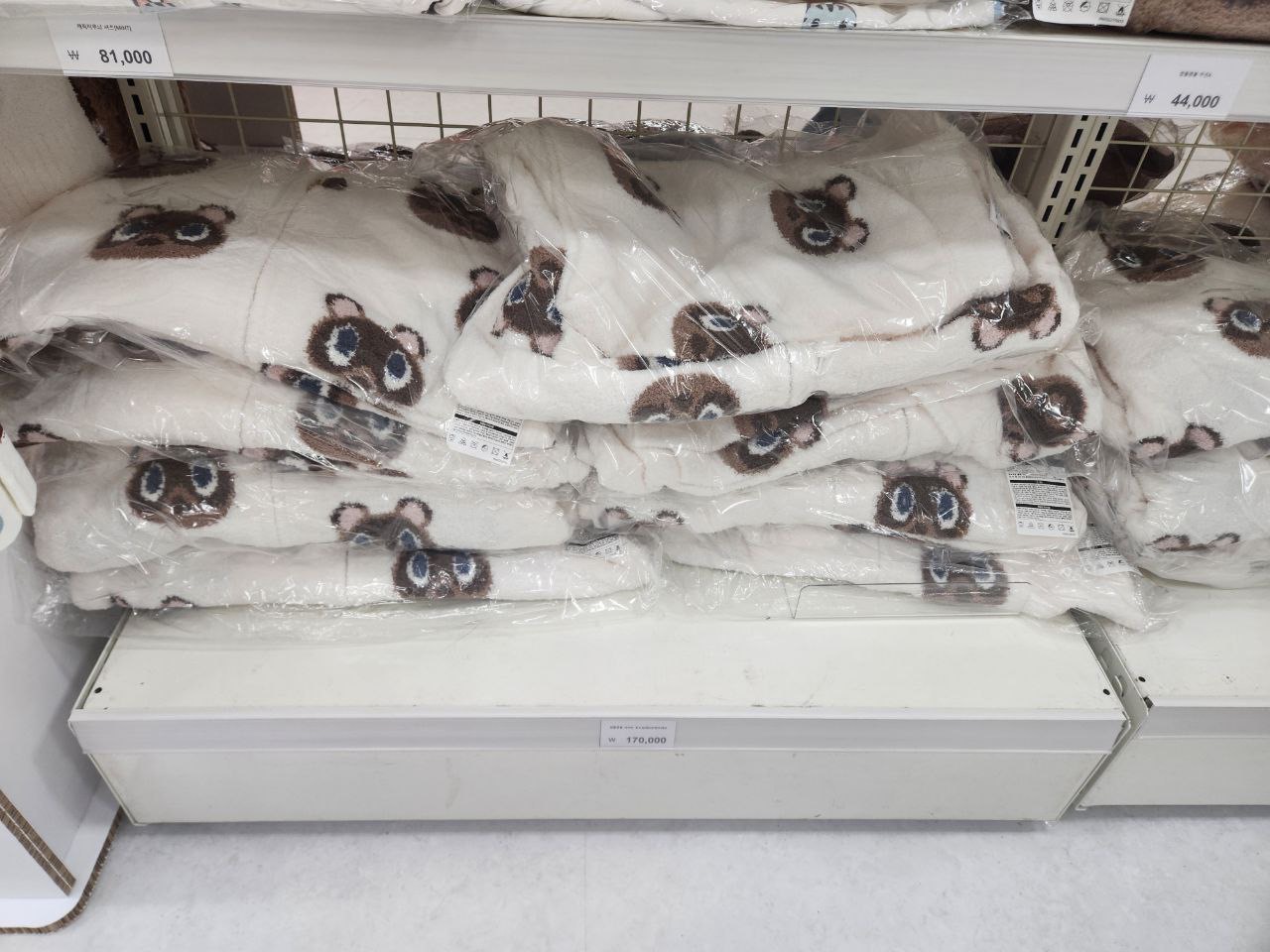 동물의 숲은 특히 이런 타올, 잠옷류 굿즈들도 다양하게 판매 중이었습니다. 이번 닌텐도 팝업스토어 서울에서 제일 비싼 가격의 굿즈는 이 동물의 숲 젤라토 타올이었습니다. 17만 1천원이었습니다.