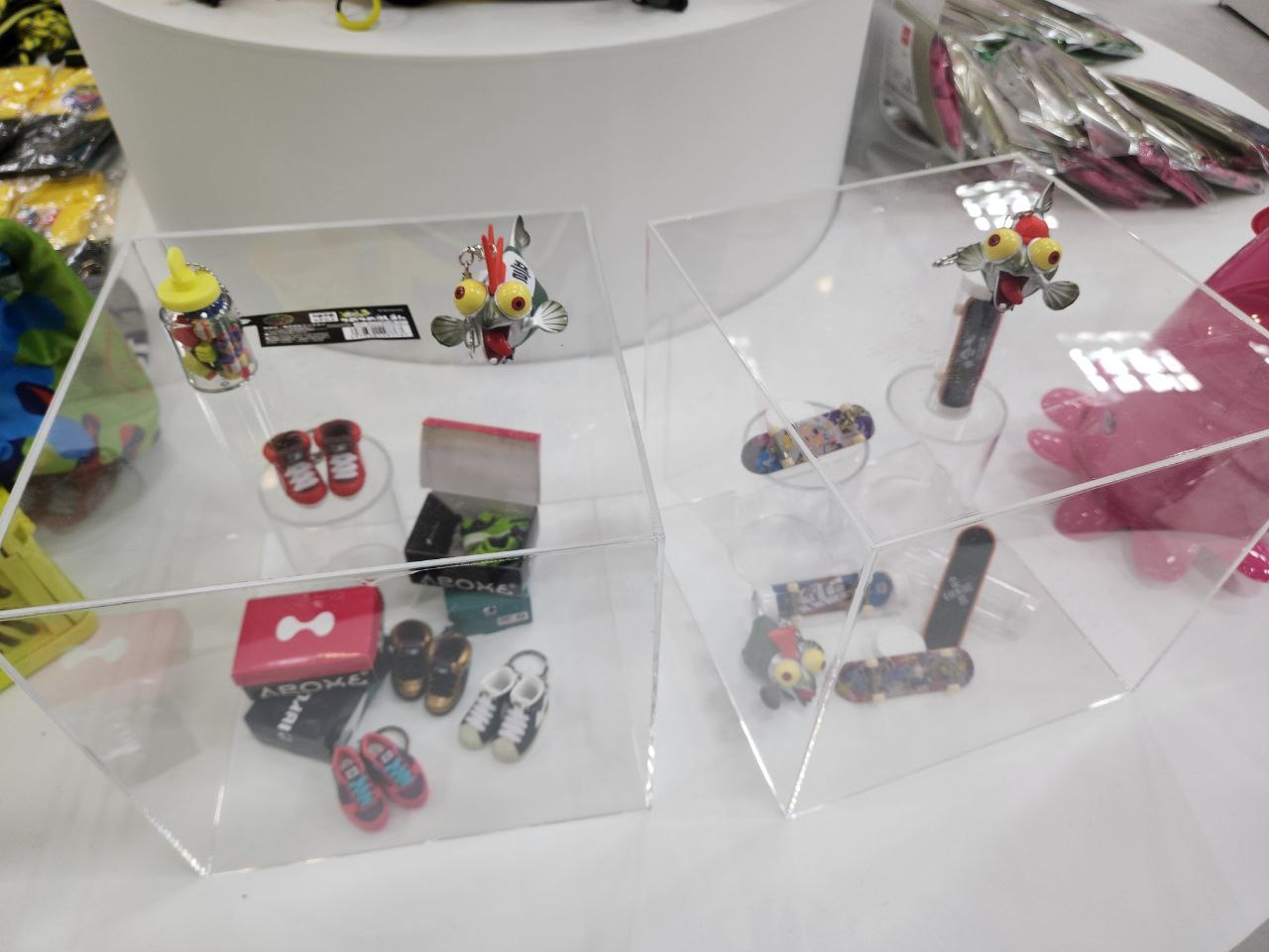 지우개들입니다. 스플래툰, 마리오 등 다양한 닌텐도 게임들의 캐릭터를 형상화한 작은 지우개들을 플라스틱 통에 자기가 원하는 모양, 갯수대로 담을 수 있습니다. 플라스틱 통 하나에 6천원입니다. 스플래툰의 경우 연어알 모양의 지우개는 완전히 소진이 된 모습입니다.