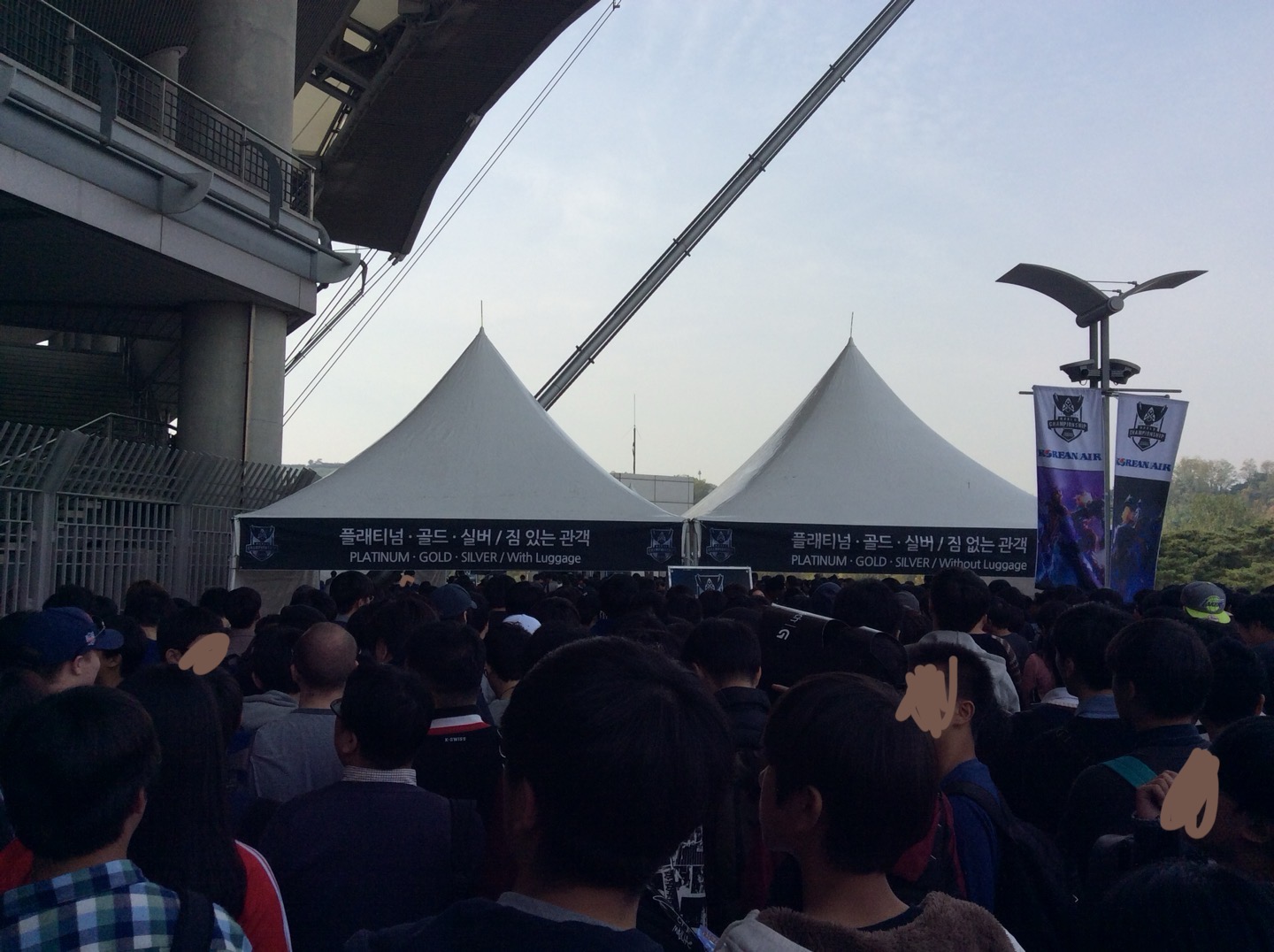 이 때는 경기장에 입장하기 위해서 짐검사를 간단하게 다 한 명씩 진행을 했었습니다.