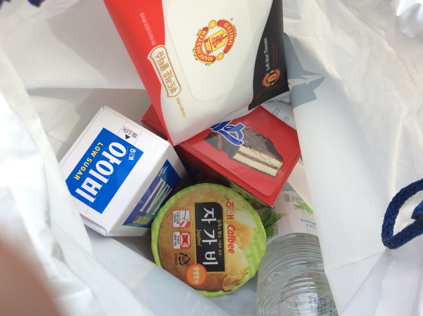 물티슈와 과자 3종류와 물. 이것만으로도 엄청났습니다.