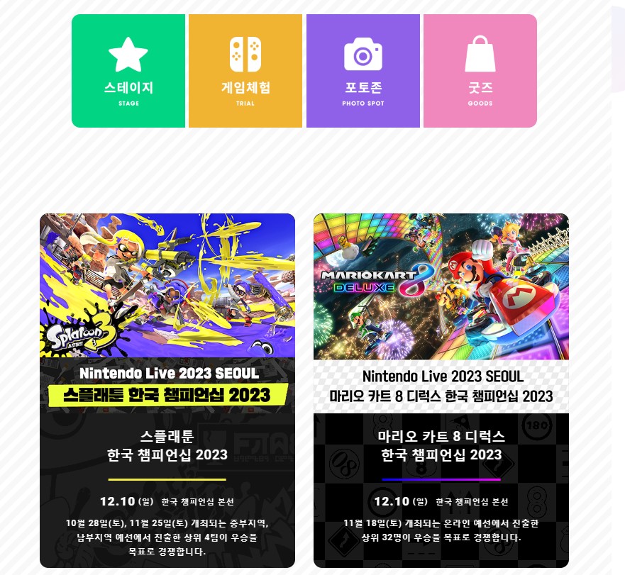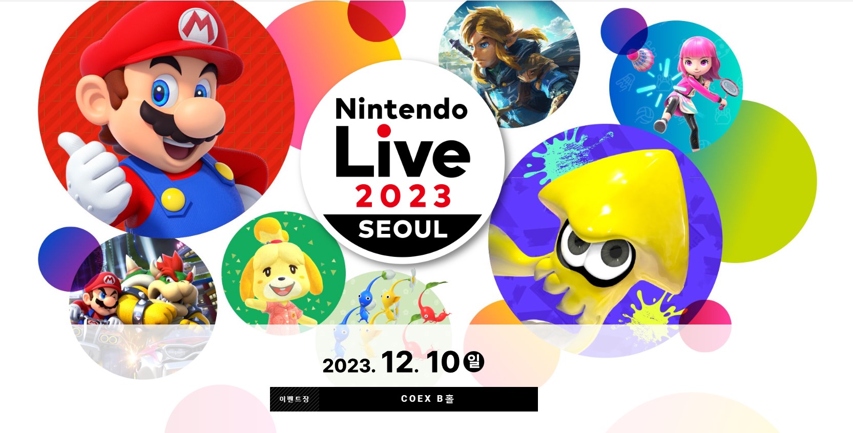 「Nintendo Live 2023 SEOUL」는 스테이지이벤트・게임 체험・게임 대회등을 즐길 수 있는 닌텐도 주최 이벤트 입니다.