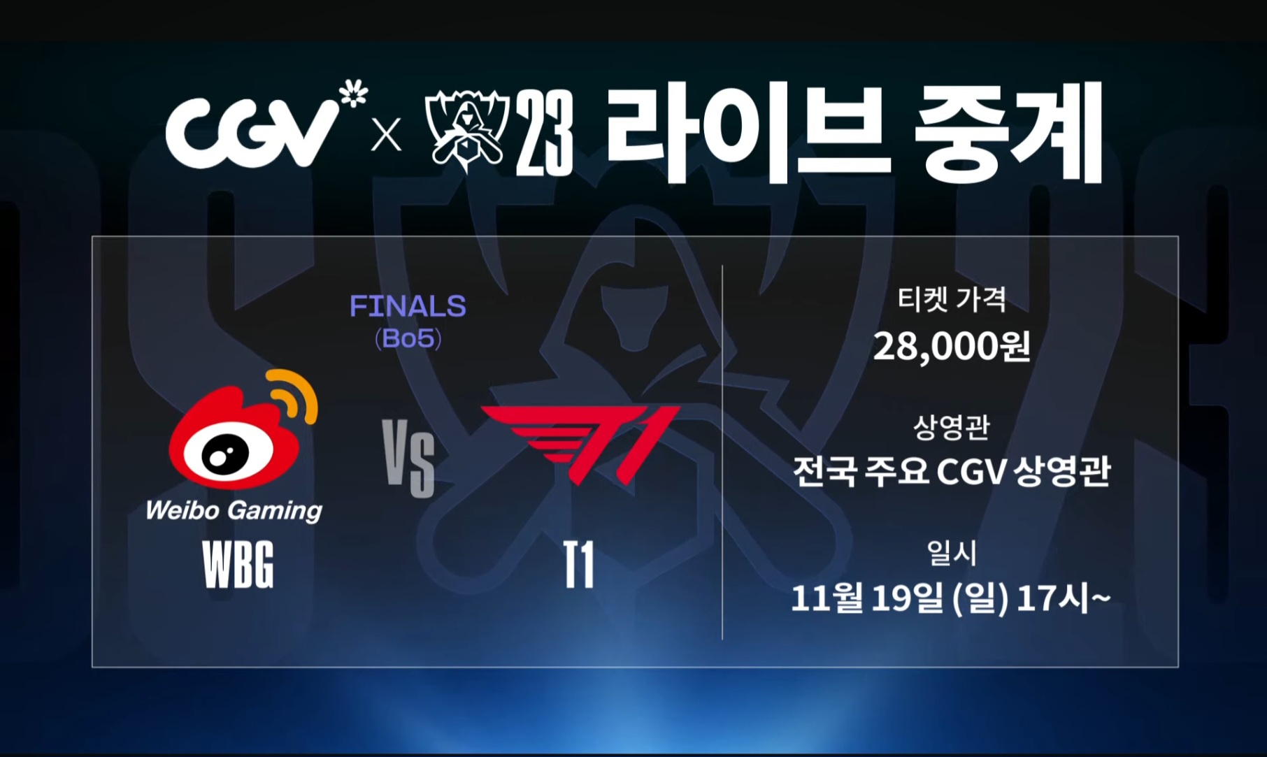 리그오브레전드 월드챔피언십, WORLDS 23 롤드컵 결승 CGV 라이브중계 예매 주의사항!정보 2023. 11. 14. 12:32반응형