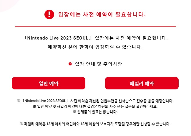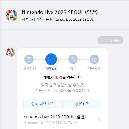 그러던 중 11월 15일 수요일 오후 2시부터 닌텐도 라이브 2023 서울의 사전예약이 기습적으로 시작이 되었습니다.