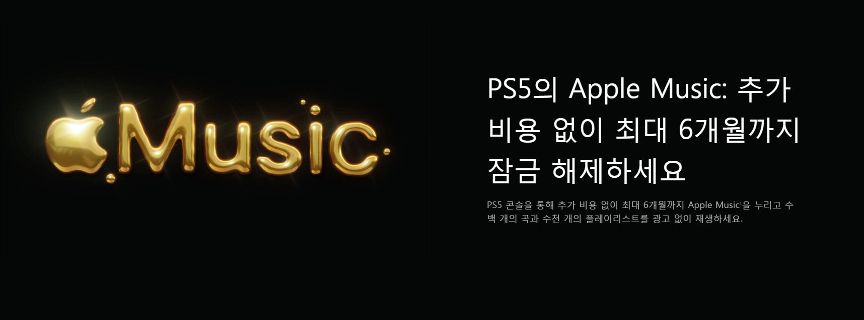 내용은 바로 플스5 콘솔을 이용하고 있다면, 추가 비용 없이 최대 6개월 동안 애플 뮤직을 이용할 수 있는 이벤트입니다.
