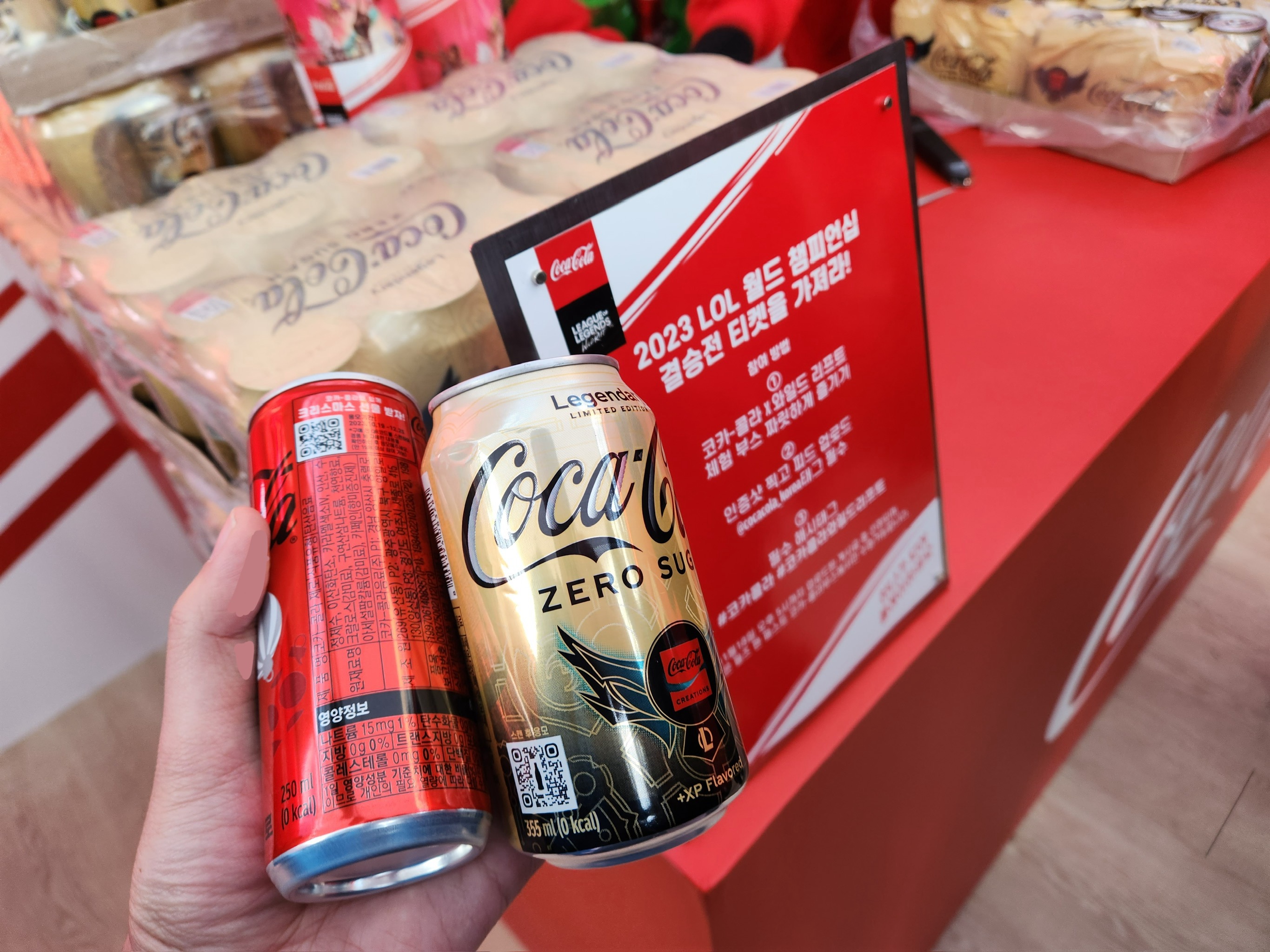 저는 아쉽게도 3초 97에 버튼을 눌렀습니다. 게임에 참여를 하지 않아도 코카콜라 부스는 방문만 하셔도 이렇게 두 가지 맛의 콜라를 무료로 나눠줍니다.